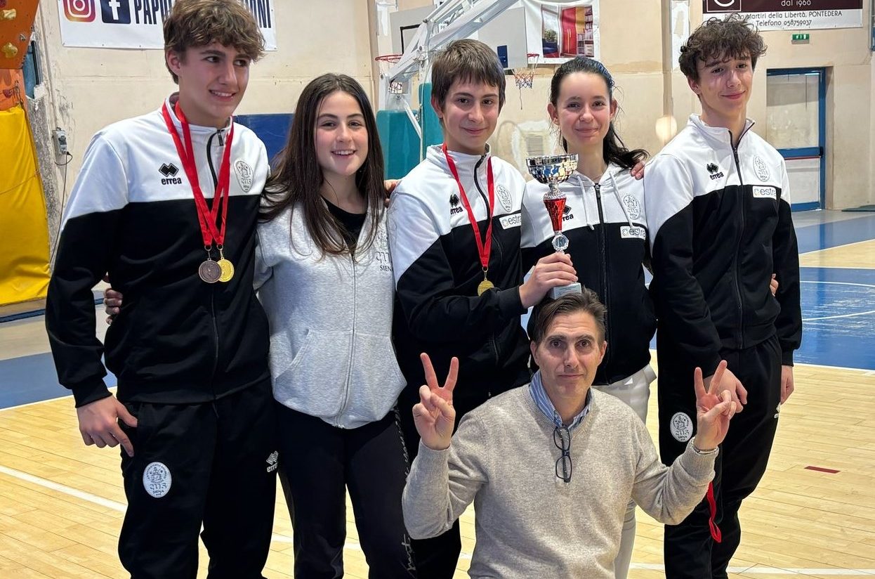 Il CUS Siena ESTRA si aggiudica a Pontedera il titolo di Campione Regionale con la squadra di sciabola maschile che con Andrea Cannucci, Matteo Danero e Francesco Fontani, nella finale per l’oro, sconfiggono Prato per 45-41.