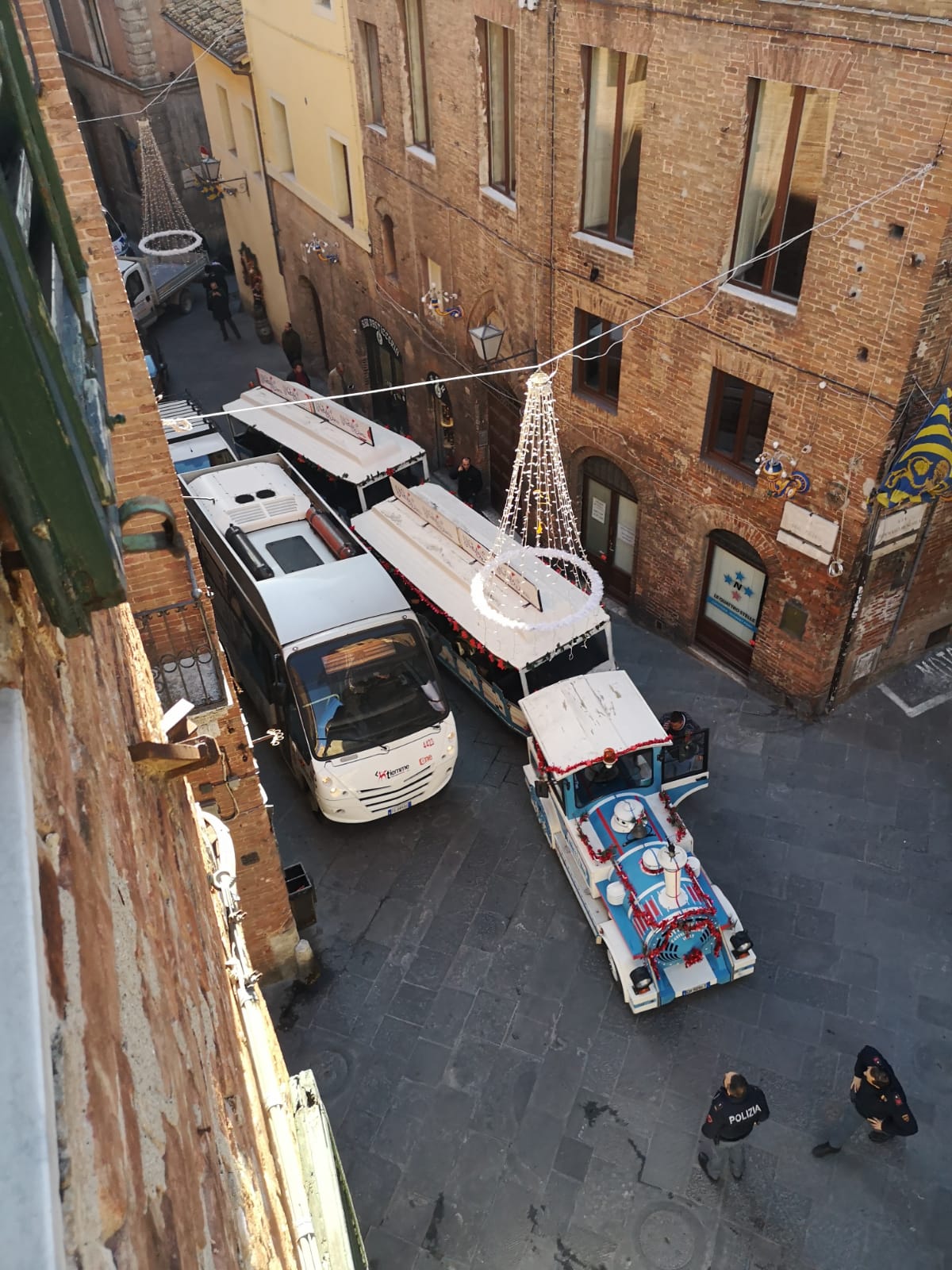 Ancora problemi tecnici per il trenino di Natale. Il mezzo con a bordo bambini e famiglie ha subito questa mattina un guasto all’altezza di via San Pietro, che ha costretto il conducente allo stop. La viabilità è andata completamente in tilt e si si sono create lunghe file: in coda anche bus e i mezzi di trasporto pubblico, via Pendola risulta bloccata. Sul posto per gestire la situazione gli agenti di Polizia Municipale. E’ la seconda disavventura che riguarda il trenino di Natale: a inizio dicembre il mezzo sbagliò strada finendo al cimitero della Misericordia, dove rimase bloccato in una via laterale: in quell’occasione genitori e ragazzi furono costretti a tornare a casa in taxi. (LEGGI QUI: https://www.radiosienatv.it/disavventura-per-il-trenino-di-natale/).