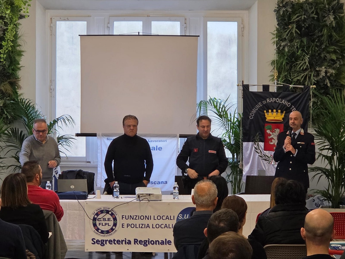 Rapolano Terme ha ospitato nei giorni scorsi un meeting organizzato dal locale Comando di Polizia Municipale e dal SULPL, Sindacato Unitario Lavoratori Polizia Locale, dedicato al recente Decreto Legge numero 177 del 25 novembre 2024 su sicurezza stradale e revisione del codice della strada. L’iniziativa si è svolta presso le Terme Antica Querciolaia con la partecipazione di oltre 100 vigili urbani in arrivo da diverse zone d’Italia. Ad aprire il meeting sono stati gli interventi di Massimiliano Tognola, comandante della Polizia Municipale di Rapolano Terme, e dell’agente Roberto Liberatori, organizzatori dell’incontro, seguiti da Maurizio Marchi, comandante della Polizia Municipale di Gambettola, in provincia di Forlì-Cesena.