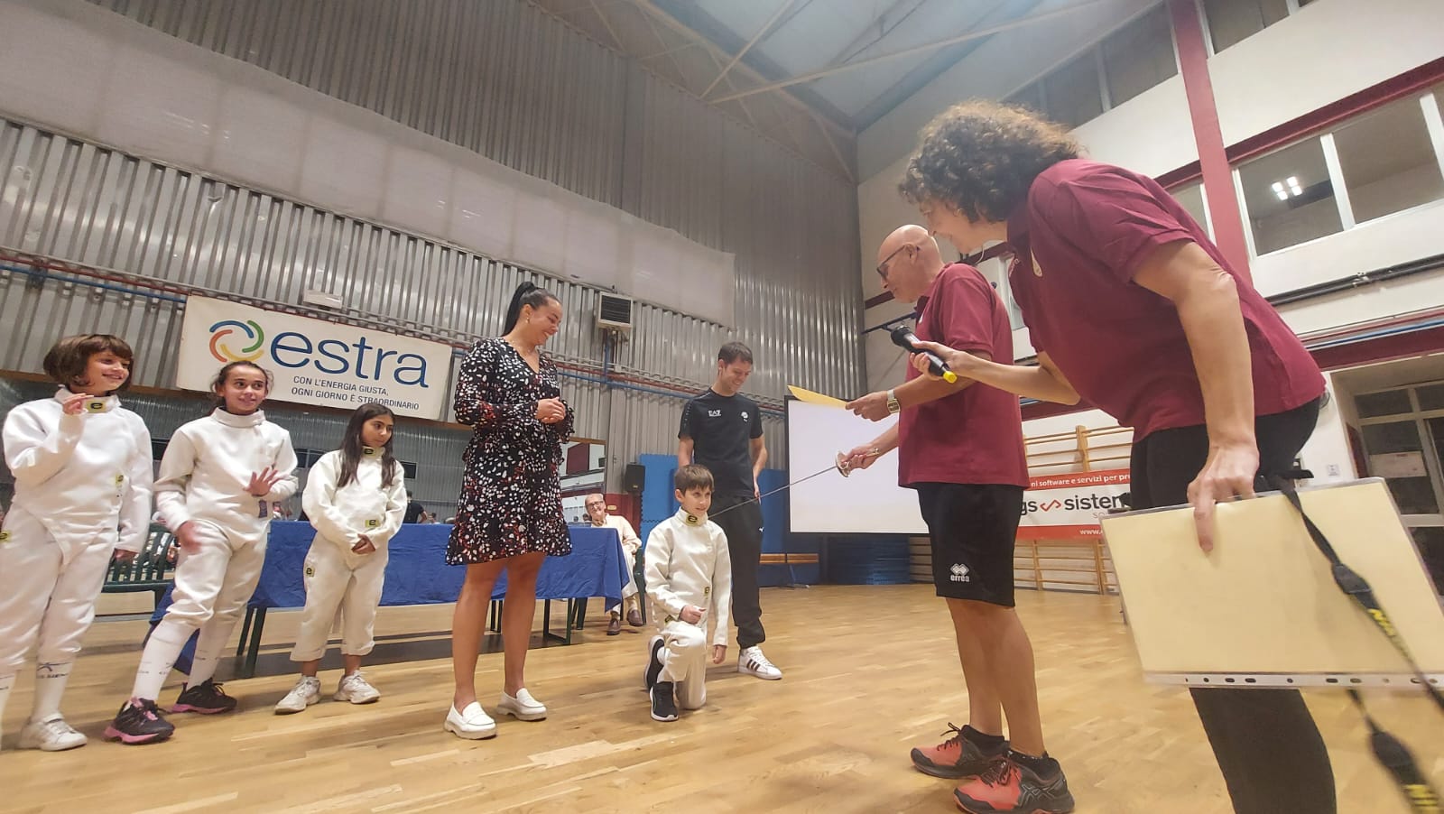 La sezione scherma del CUS Siena ha da sempre rappresentato una scuola di livello nazionale e internazionale dove sono cresciuti molti giovani senesi che hanno avuto il privilegio di vestire la maglia azzurra. Tra questi il padrino della serata, insieme ad Alice Volpi, il plurititolato Matteo Betti. “E’ sempre bello entrare in palestra e vedere i bimbi, qua mi alleno spesso – aggiunge Betti – a loro posso dire di divertirsi, io sono entrato qui per divertirmi poi qualcuno ha la fortuna di calcare pedane importanti”.