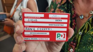 “Sapete che l’ho avuta fino al 2020 quando il grosso impegno nel volontariato mi imponeva di non avere tessere di partito. Vista l’evoluzione del Pd a Siena e la svolta di apertura e di richiesta di unità per una sinistra forte, ho fatto la scelta di riprendere la tessera. C’è bisogno adesso di un’opposizione forte in consiglio comunale contro un’amministrazione che vivacchia e che usa il manuale cencelli per le nomine. Non entro nel Pd per avere cariche ma per portare la mia esperienza e mettermi a disposizione. La prima tessera l’avevo presa nel 2012”.