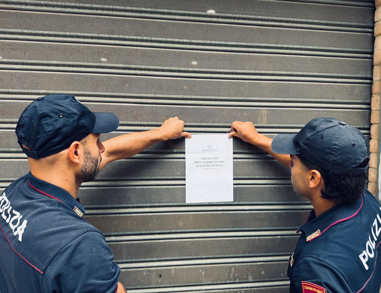 Dopo gli arresti e le denunce della Polizia di Stato di Siena, avvenuti nei giorni scorsi a conclusione delle indagini svolte dalla Squadra Mobile, il Questore Ugo Angeloni ha chiuso il bar dove avveniva l’attività di spaccio.