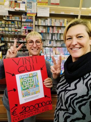 La titolare della tabaccheria “Il Cavallerizzo” di Siena, Simona Bozzi, e la sorella Silvia sono felici e sorridenti per la vincita che è avvenuta nel loro negozio (che si trova in Via Montanini, all’angolo con Via del Cavallerizzo appunto) di 200mila euro al “Cruci Jolly”, il primo Gratta e Vinci con cui si gioca con le lettere. Un biglietto costa 3 euro e per vincere i premi in palio, fino a 200.000 €, è necessario completare delle parole.