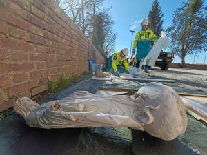 Biccherna 24 è stata anche l’ occasione per testare alcune procedure di attivazione e valutazione del Comune di Siena, che ha messo a disposizione il Centro Operativo Comunale di Cerchiaia intitolato a Giancarlo Rossetti, e dell’Università degli Studi di Siena. Quest’ ultima, assieme alla Solidarietà Cooperativa Sociale, ha verificato le modalità di evacuazione del Complesso Didattico di San Francesco. Successivamente all’evacuazione i volontari hanno attuato una serie di interventi in soccorso di alcuni figuranti rimasti dentro la struttura mentre i ricercatori di Scienze della Terra svolgevano attività di sensibilizzazione verso gli studenti universitari. Un territorio come quello di Siena non poteva prescindere da un’azione volta alla salvaguardia dei beni artistici. La Curia di Siena e la Parrocchia dell’Osservanza hanno messo a disposizione i locali ed i generosi spazi verdi della Basilica di San Bernardino da Siena al’ Osservanza. Qui, oltre alla già citata simulazione è stato possibile riprodurre una estesa ricerca dispersi con unità cinofile specificamente addestrate alla ricerca in ambiente boschivo oltre ad una missione di orienteering con la ricognizione di un danno in un sedime industriale.