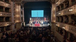 Solenne cerimoniaoggi al Teatro dei Rinnovati, nel corso della quale è stato assegnato il Mangia 2022 alla campionessa mondiale senese di scherma Alice Volpi, contradaiola della Chiocciola, nata da padre senese e madre brasiliana. La candidatura della Volpi, che fa parte del gruppo sportivo della Polizia di Stato “Fiamme Oro”, è stata accettata all’unanimità dalla commissione ristretto del Concistoro del Monte del Mangia, per aver contribuito ad accrescere la fama di Siena nel mondo.