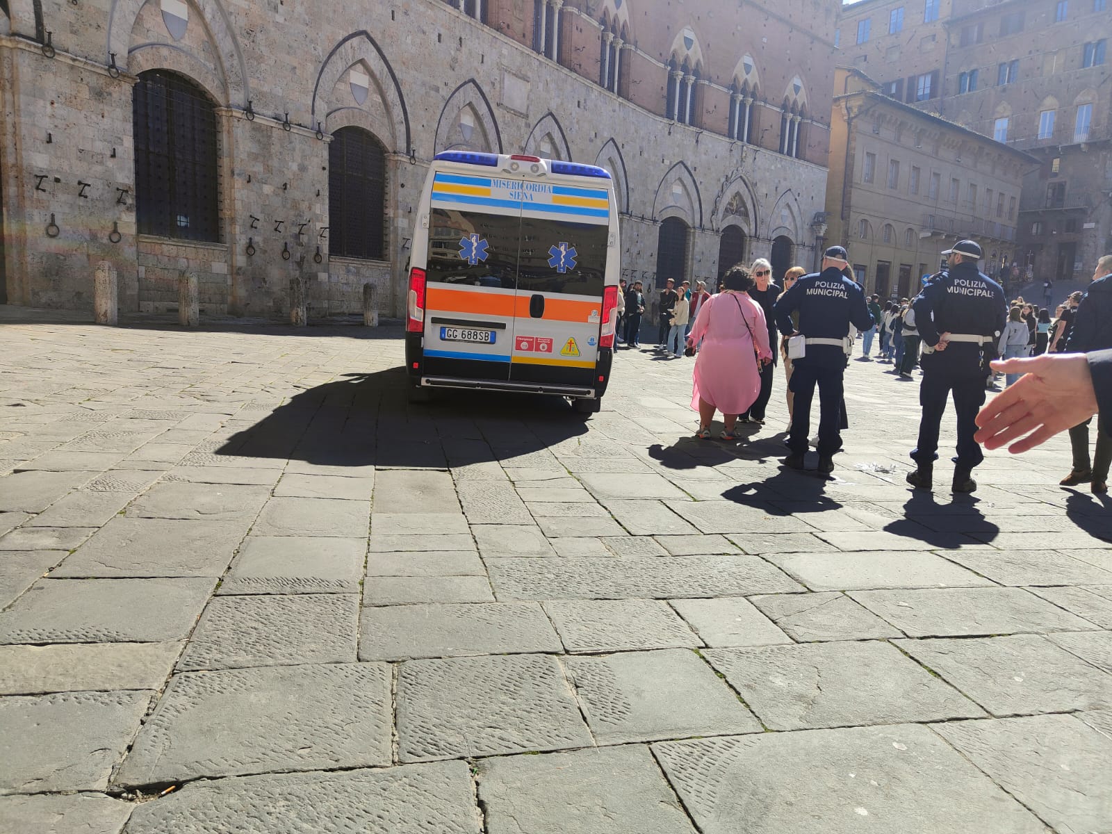 Una “paliata” in Piazza del Campo che è finita al Pronto Soccorso per uno dei partecipanti. E’ successo poco fa, nella conchiglia affollata di gente. Un gruppo di ragazzi stranieri, cinque o sei, probabilmente in gita nella nostra città, hanno voluto sfidarsi facendo una corsa nell’anello, partendo da davanti all’Entrone. Il giovane che era in testa a tutti e comandava la gara però, giunto di fronte alla Cappella, ha cominciato prima a sbandare e poi è caduto rovinosamente a terra. Tanti i presenti che si sono adoperati per soccorrerlo, finchè è arrivata l’ambulanza del 118, che lo ha portato al Pronto Soccorso per gli accertamenti del caso.