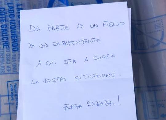 Continuano le testimonianze di solidarietà e vicinanza da parte dei cittadini ai lavoratori e lavoratrici di Beko Siena, che proseguono il presidio di fronte ai cancelli dell’azienda in Viale Toselli. Oggi sono arrivati scatole di dolci, “da parte di un figlio di un ex dipendente a cui sta a cuore la vostra situazione”, come recita il biglietto.