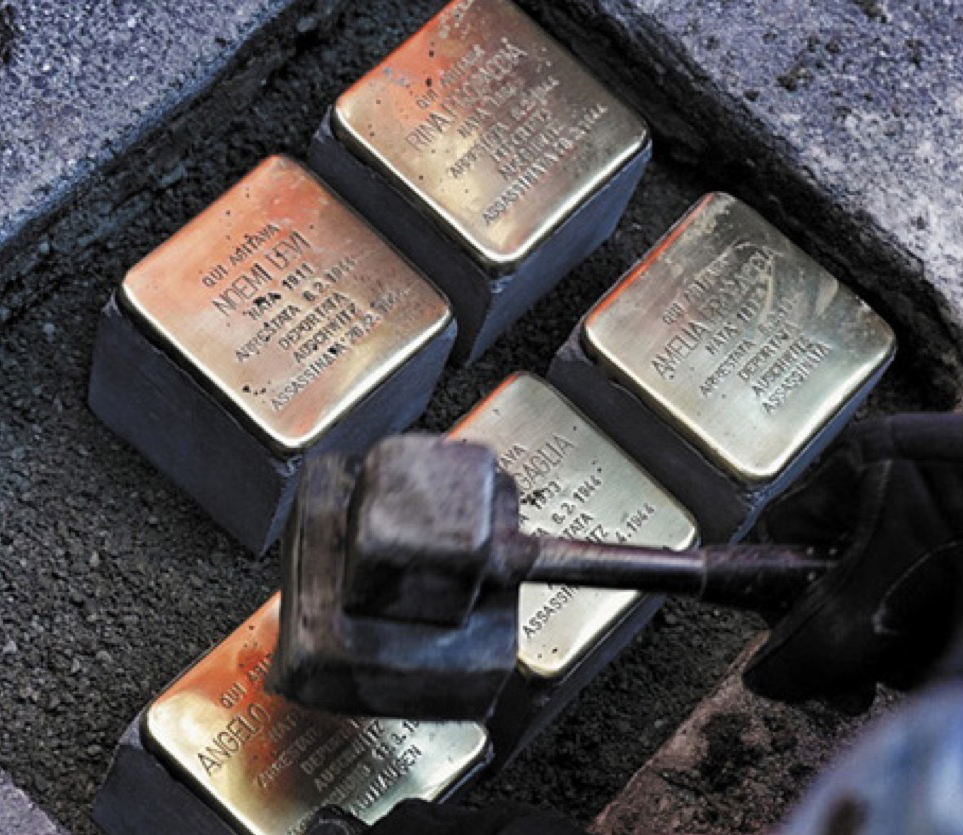 Le Pietre d’inciampo sono un progetto realizzato dall’artista berlinese Gunter Demnig che a partire dal 1996 ha collocato nel tessuto urbano e sociale delle città europee una memoria diffusa di tutte le vittime della deportazione nei campi di concentramento e sterminio nazisti. Il progetto è iniziato nel 1990 a seguito di una discussione con una donna di Colonia, che negava la deportazione di oltre mille sinti dalla sua città da parte del Reich. Scosso da quell’episodio, Demnig decise di agire attivamente adoperandosi per portare avanti la memoria di ogni singolo deportato. Le pietre hanno lo scopo di far inciampare in senso figurato le riflessioni dei passanti vicino all’opera, costringendoli a ricordare il motivo per il quale i sampietrini si trovano proprio lì. Oggi le Pietre d’Inciampo di Gunter Demnig si trovano in 26 paesi europei raggiungendo un totale di oltre 80.000. In Italia il progetto ha preso campo a partire dal 2010 a Roma. Al momento sono presenti oltre 2.378 pietre in 290 diversi Comuni d’Italia. per maggiori informazioni: Stolpersteine Pietredinciampo comunepietre-inciampo