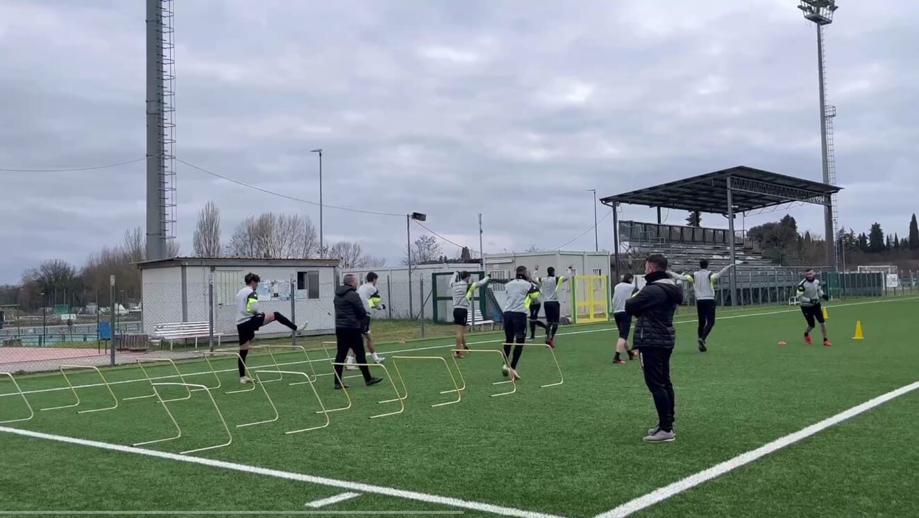 Allenamento di rifinitura stamani per il Siena di mister Padalino che oggi pomeriggio scende di nuovo in campo per il recupero della 21a giornata di campionato.