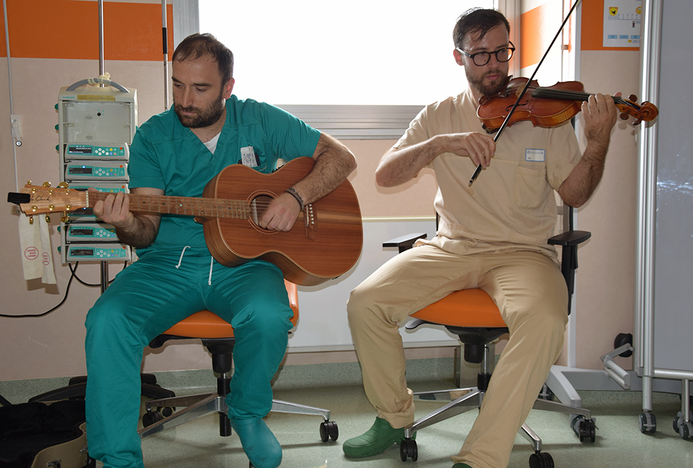 15 incontri in poco più di quattro mesi e mezzo. Il progetto di “Ematologia in musica” si è potenziato notevolmente dopo il primo anno sperimentale, che ha visto il professor Antonio Batelli, flautista e docente di storia e filosofia in un istituto superiore di Siena, su base volontaristica, mettere a disposizione il suo tempo e la sua professionalità per eseguire brani di musica classica allietando i tempi di cura dei pazienti del day hospital di Ematologia, diretta dalla professoressa Monica Bocchia. Al professor Batelli si sono affiancati due medici, Andrea Frosolini e Mario Tortoriello che, con violino, chitarra e voce, hanno incrementato gli appuntamenti grazie anche agli ottimi riscontri avuti dai pazienti nei mesi scorsi, che hanno gradito l’intrattenimento musicale durante la somministrazione delle terapie.