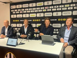 Ad aprire la conferenza il direttore generale Farina: ” Ho il piacere di presentare la nuova proprietà che ha creduto nel progetto. Sono mesi che parliamo tanto. Ringrazio anche Giacomini per questa opportunità. Mi piace il modo che ha di lavorare questo gruppo, dobbiamo raggiungere traguardi nel campo ma anche nell’organizzazione. Ben venga chi vuole investire nel calcio e chi vuole fare progetti a lungo termine”.