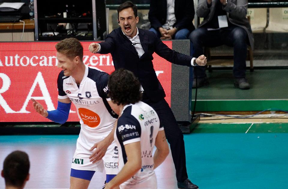 Nel terzo set la Emma Villas ha le idee chiare, il set prosegue equilibrato fra alti e bassi, ma la squadra di coach Cichello torna in partita. Vedovotto mette dentro tutto, cuore e anima hanno la sua firma. E’ lui a trascinare i compagni insieme a Giovi che continua a dare continuità in ricezione e soprattutto in difesa. A rompere l’equilibrio lo storico Braga chiamato in causa da Cichello e lui risponde subito presente, avvicinando i biancoblu sul 19-20. Vedovotto sale in cattedra nel momento giusto, e con lui il set prosegue poi punto a punto ma la determinazione è in campo senese. Gli ospiti non sfruttano due set point e con l’errore al centro di Matteo Zamagni si va ai vantaggi (24-24). Kay Van Dijk ribalta tutto e dà il primo set point di questo parziale a Siena. E’ un punto che pesa moltissimo. Molto utile il servizio di Filippo Pochini, il primo set point è subito sfruttato grazie al muro-punto di Alisson Melo che si prende il set sul 27-25.