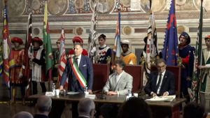 Tradizioni che rendono unica Siena. Il 25 Marzo è Capodanno Senese, la festa di Siena e dei senesi. Il primo appuntamento dell’anno che apre ufficialmente le porte alla stagione paliesca 2023. Questa è stata anche la prima occasione pubblica per il neo Rettore del magistrato delle Contrade Emanuele Squarci a pochi giorni dalla sua elezione. A tenere la consueta Lectio Magistralis nella Sala del Mappamondo di Palazzo Pubblico Brunello Cucinelli, noto imprenditore nel mondo della moda e del tessile Made in Italy. Una scelta non a caso, ma anzi che ben si sposa con una delle tradizioni più antiche e identitarie di Siena, quella della Città dei Mestieri.