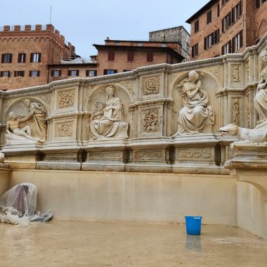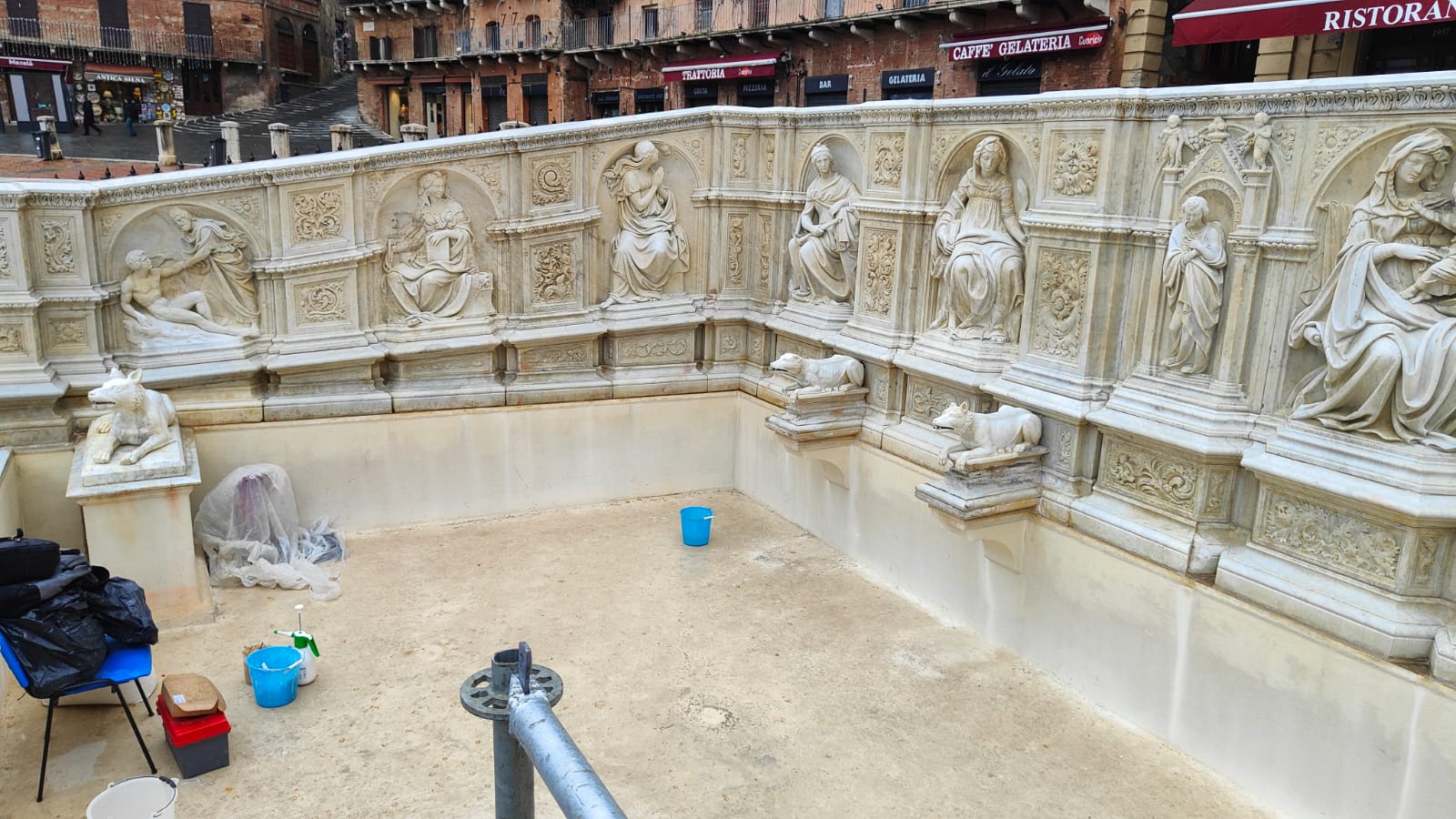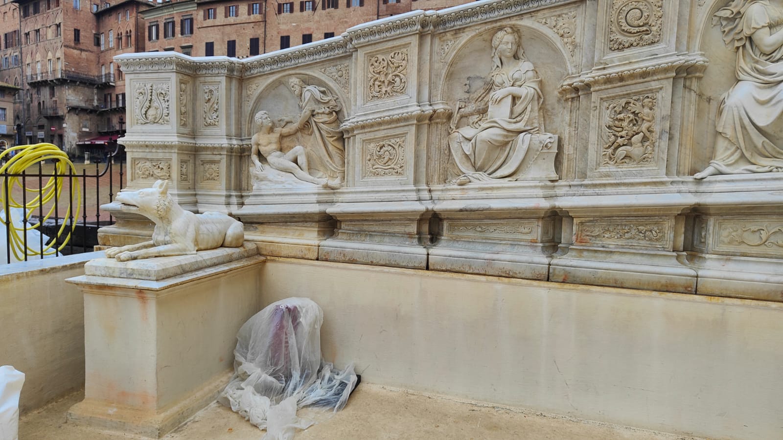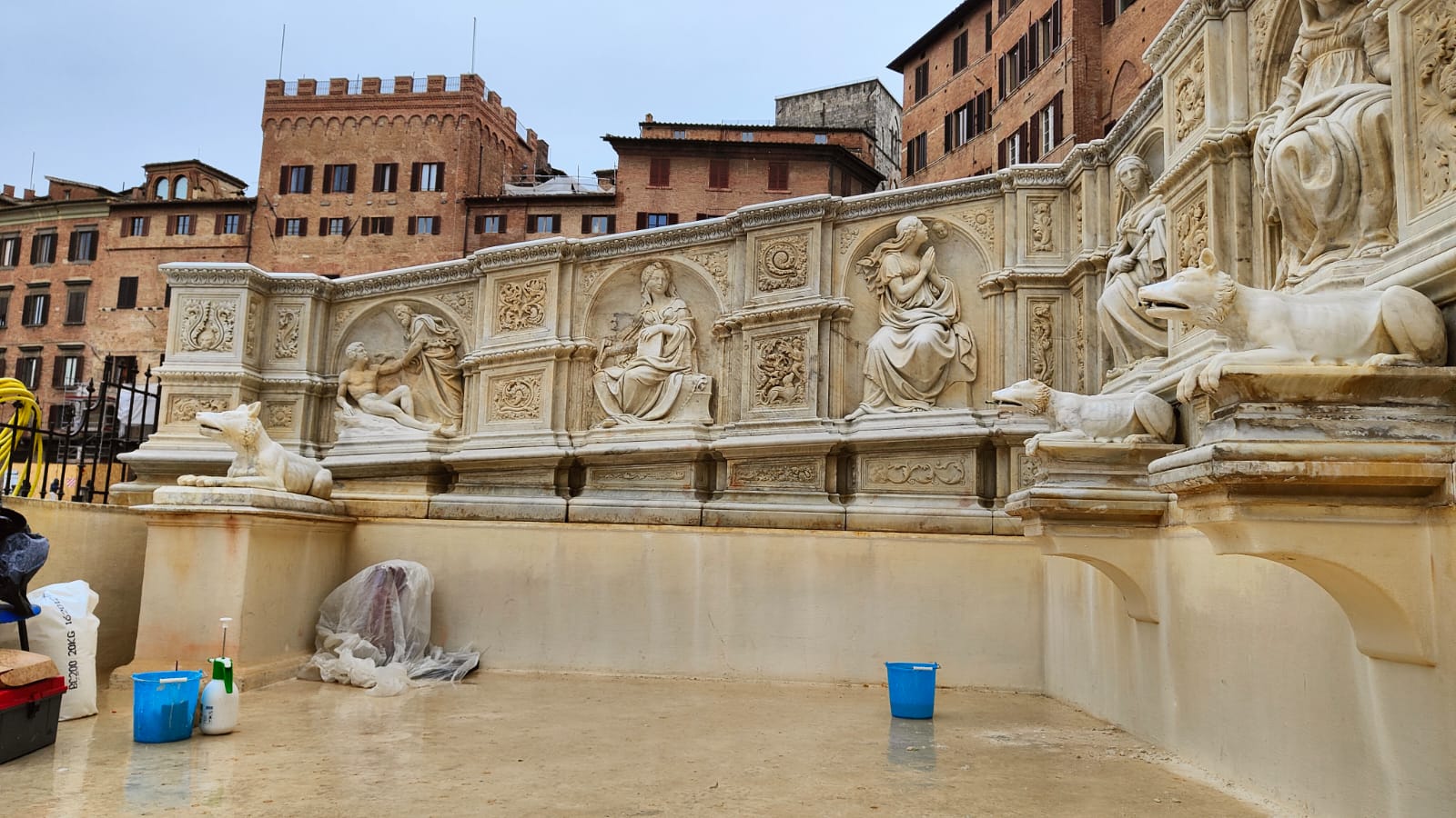 Gli ultimi ritocchi e poi domani è in programma la presentazione ufficiale del lavoro di restauro. Oggi intanto, liberata dal cantiere, la Fonte risplende in tutta la sua ritrovata bellezza e rischiara Piazza del Campo, nonostante la giornata grigia.