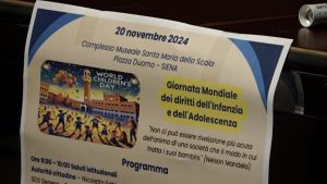 Per l’occasione, il Complesso museale Santa Maria della Scala ha ospitato una mattinata di lavori sul tema: “Negli ultimi anni abbiamo messo più attenzione alle opportunità da offrire ai minori – ha detto il direttore della Società della Salute Senese, Lorenzo Baragatti -. Stiamo assistendo, a livello mondiale, ad un diffuso fenomeno di immigrazione anche dei minori e questo lo si vede anche nella nostra provincia. L’attenzione deve rimanere alta e non dobbiamo considerare i bambini dei piccoli adulti, ma delle persone di quella specifica età evolutiva e mettersi in ascolto dei loro problemi. Il 20 novembre deve essere tutti i giorni, non solo in questa giornata”.