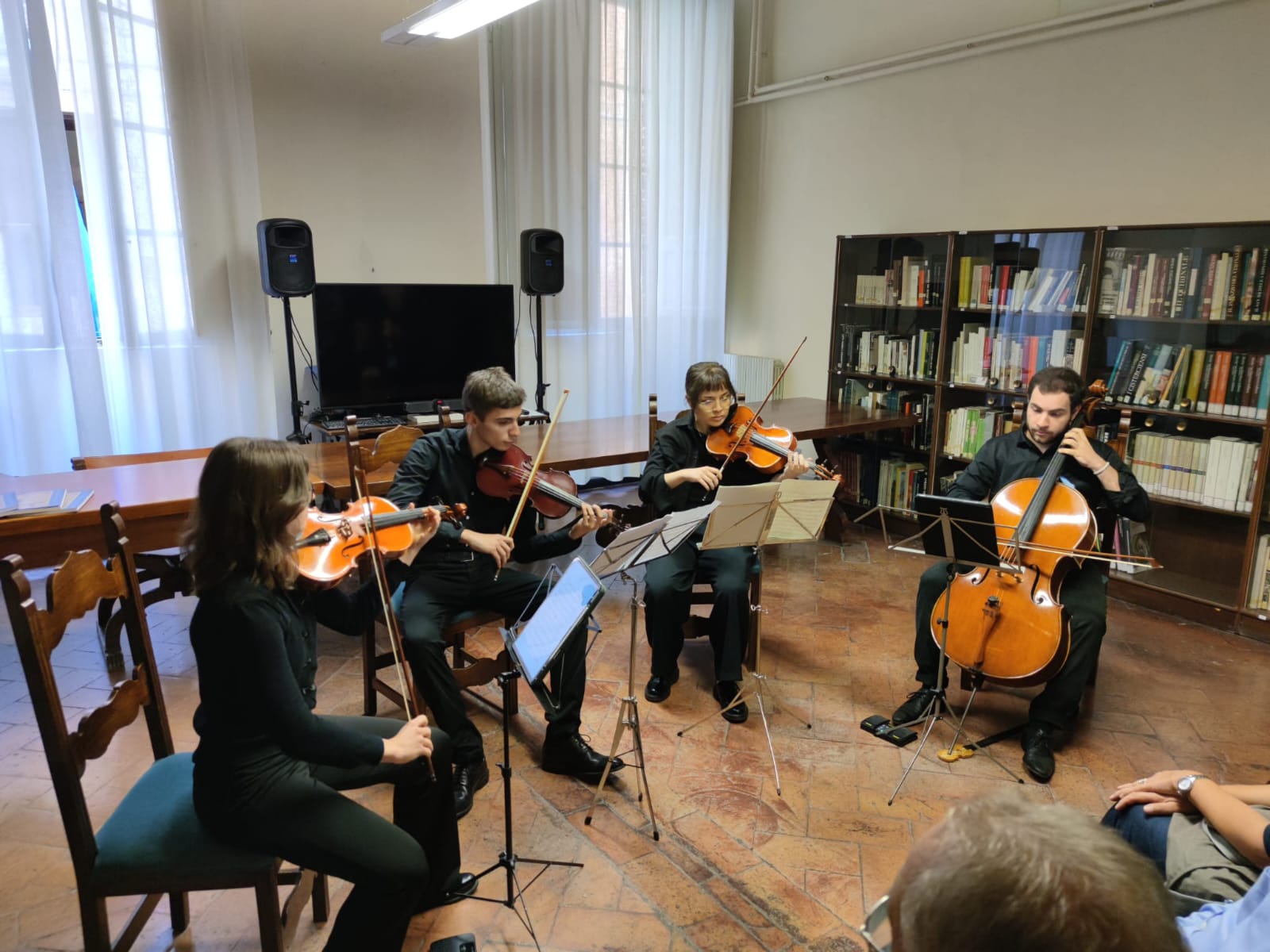 In occasione delle Giornate Europee del Patrimonio, domenica 28 settembre 2025, nello splendido palazzo Marsili Libelli a Siena, sede della Soprintendenza Archeologica, Belle Arti e Paesaggio per le province di Siena, Arezzo e Grosseto, in Via di Città, gli allievi del Conservatorio Rinaldo Franci: Valeria Esposito (violino), Jacopo Barsotti (violino), Laura Paffetti (viola) e Davide Tortoro (violoncello) hanno eseguito musiche di Wolfgang Amadeus Mozart, “Quartetto K 157 in do maggiore”.