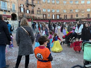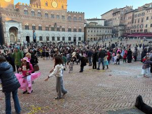 Giovedì grasso ricco di festa e divertimento in Piazza del Campo. Primo appuntamento del calendario dedicato al Carnevale a Siena “Mi ci gioco la maschera”. Tanti i bambini che si sono divertiti con musica, giochi di legno, maschere e trucchi dell’associazione Topi Dalmata. A Fontegaia dj set, per intrattenimento e balli per tutti. Un pomeriggio che sembra aver convinto i piccoli e i più grandi, tutti soddisfatti di vivere l’atmosfera del Carnevale in una giornata anche baciata dal sole.