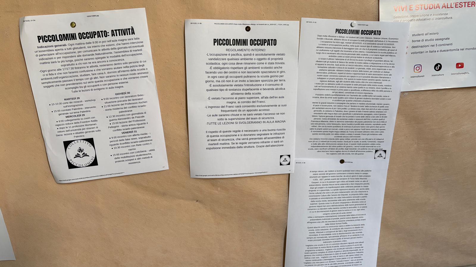 Prima il Liceo Artistico “Duccio di Boninsegna” (ieri 27 ottobre), poi il Liceo Piccolomini (oggi, 28 ottobre): proseguono anche a Siena le occupazioni degli studenti legate alla causa palestinese e alle proteste contro le politiche del governo.