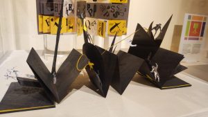 La mostra propone una selezione di opere della V Biennale: 4 installazioni, 46 libri d’artista, Ibridi e di design, 25 dei quali arricchiti dalla realtà aumentata, più alcuni libri della Collezione Librartis della Biblioteca Briganti, già esposti a Milano.
