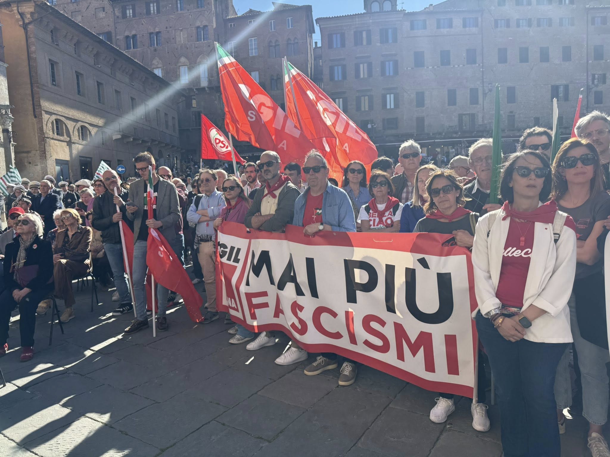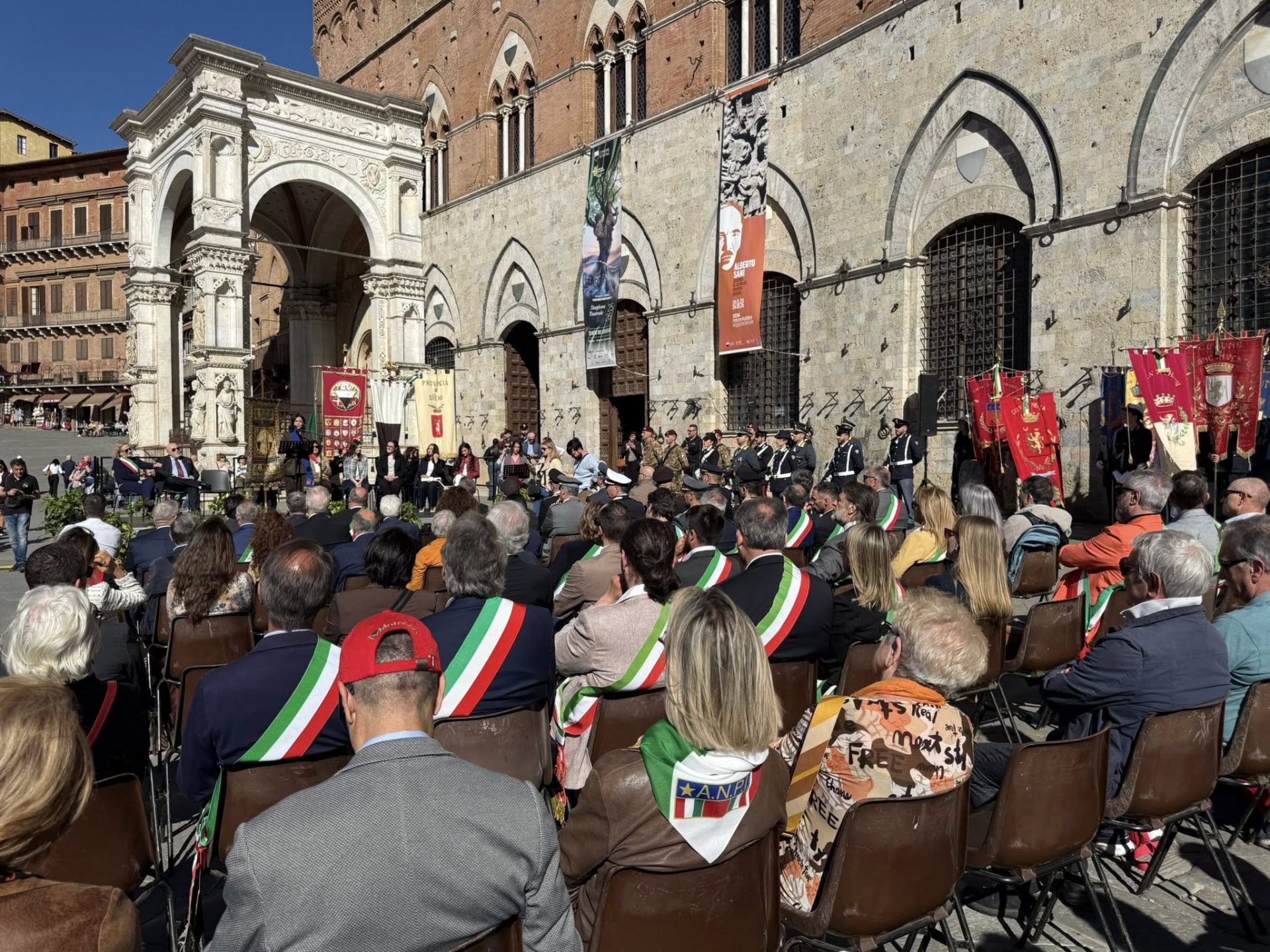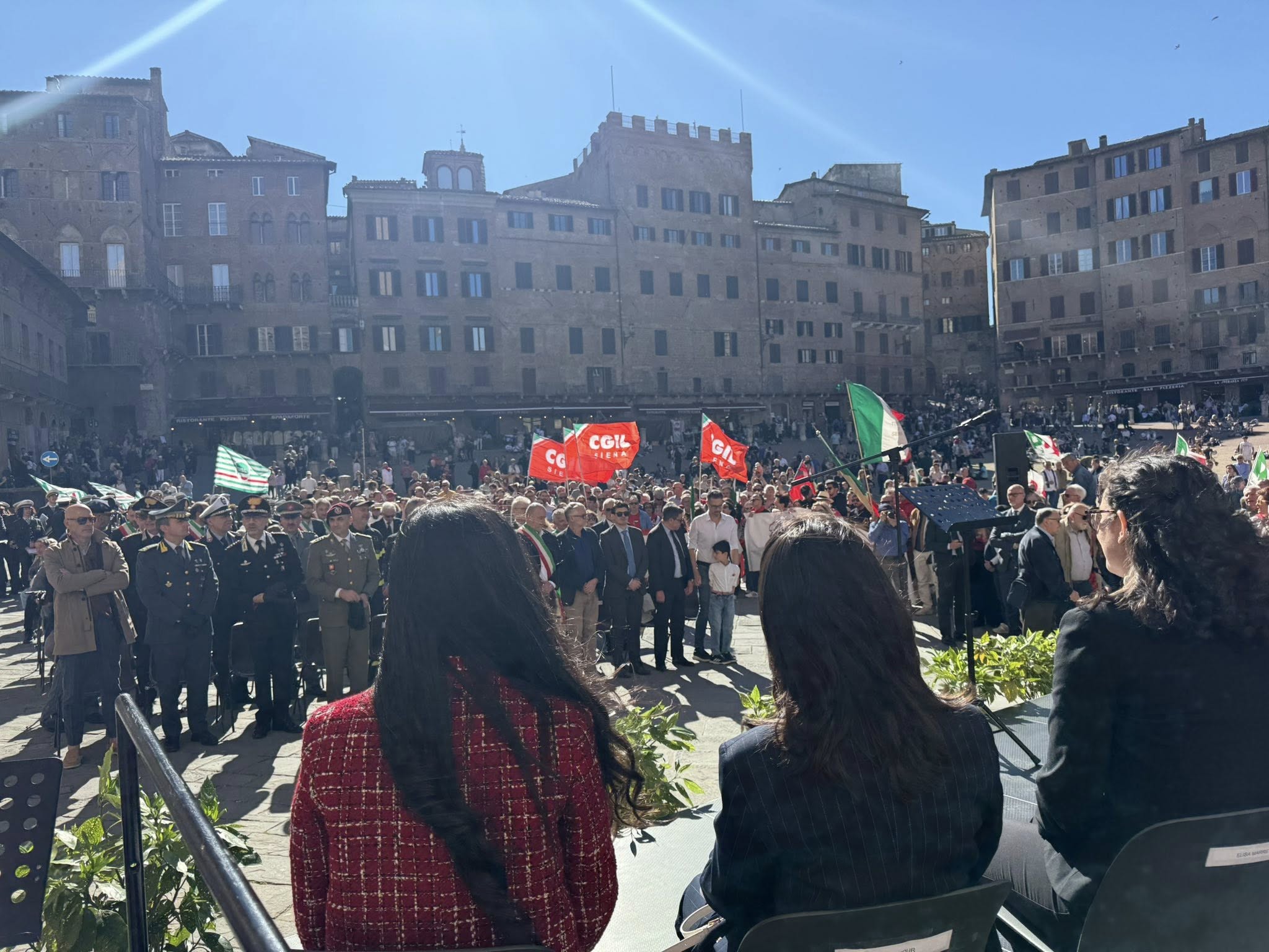 Una Piazza del Campo gremita, attraversata da volti, bandiere e generazioni diverse, ha fatto da cornice alle celebrazioni del 25 Aprile a Siena. Donne, uomini, giovani e famiglie hanno partecipato numerosi alla cerimonia per la Festa della Liberazione, in un clima di raccoglimento ma anche di forte partecipazione civile, a ottantuno anni dalla fine del nazifascismo.