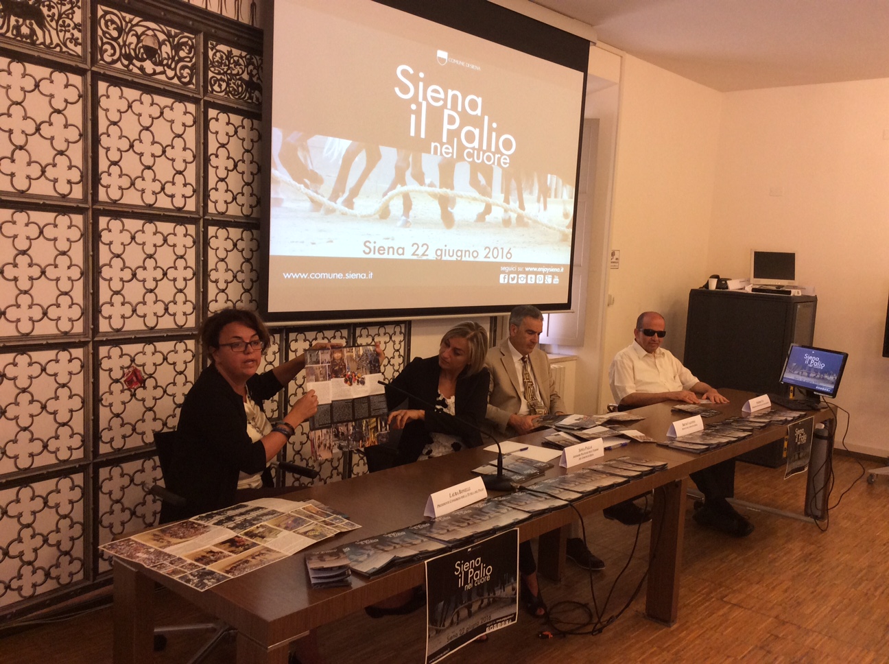 Siena, il Palio nel cuore è il nuovo dépliant, realizzato dal Comune di Siena in collaborazione con il Consorzio per la Tutela del Palio, presentato a Palazzo Berlinghieri. “Un’operazione editoriale – ha aperto l’assessore al Turismo Sonia Pallai, ideatrice del progetto – che continua il proficuo impegno che, negli ultimi decenni, ha visto l’amministrazione comunale diffondere informazioni e conoscenza sulla grande Festa senese. Il dépliant, destinato alle migliaia di turisti che visitano Siena, è frutto, per la prima volta, di una sinergica collaborazione con il Consorzio per la Tutela del Palio iniziata con l’allora presidente Nicoletta Fabio, adesso Rettore del Magistrato delle Contrade, e proficuamente proseguito con l’attuale presidente Laura Bonelli coadiuvata dall’amministratore delegato all’immagine Paolo Leoncini”. “La città – ha proseguito – dopo 31 anni ha nuovamente un dépliant dedicato ai visitatori, l’ultimo, infatti, fu quello realizzato nel 1985 dall’Azienda di promozione turistica”.
