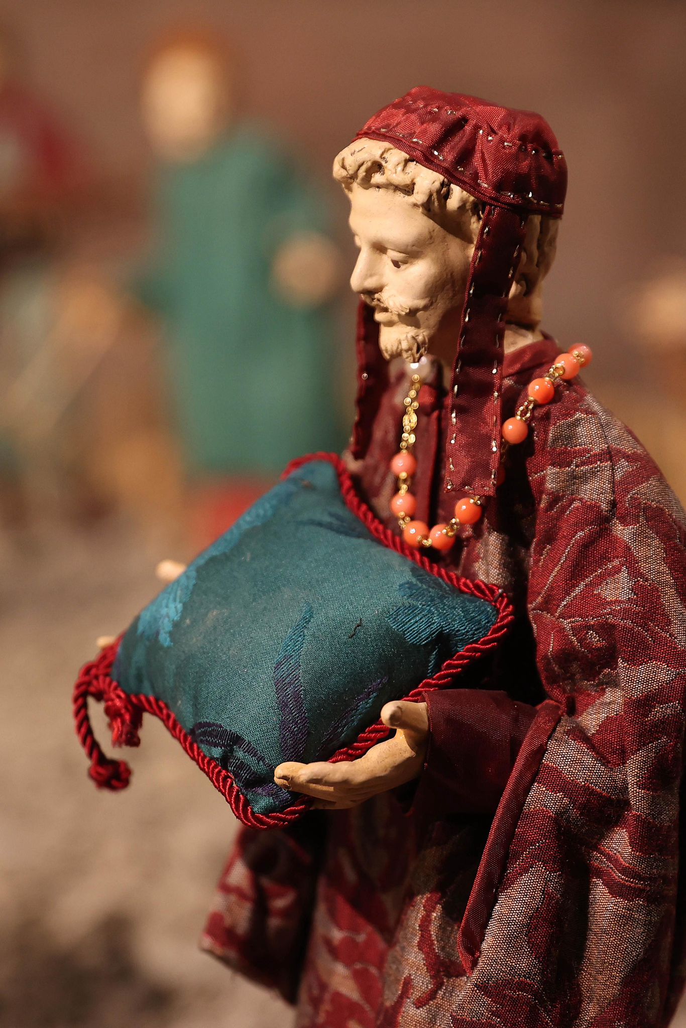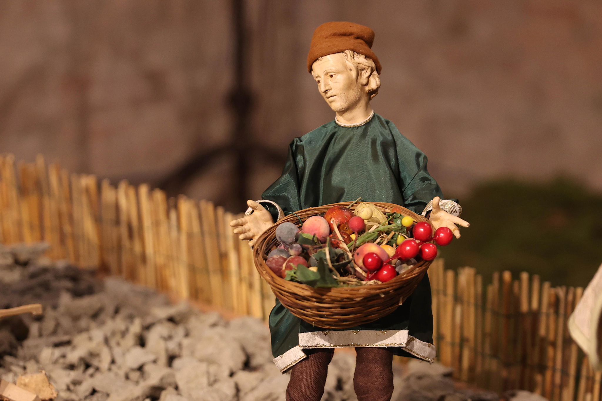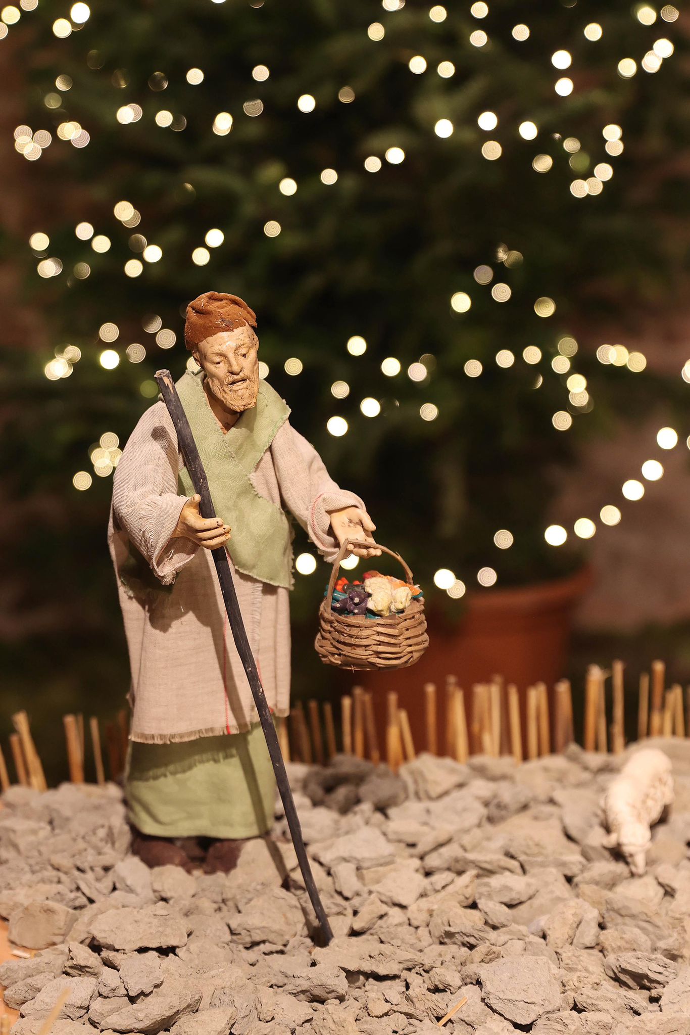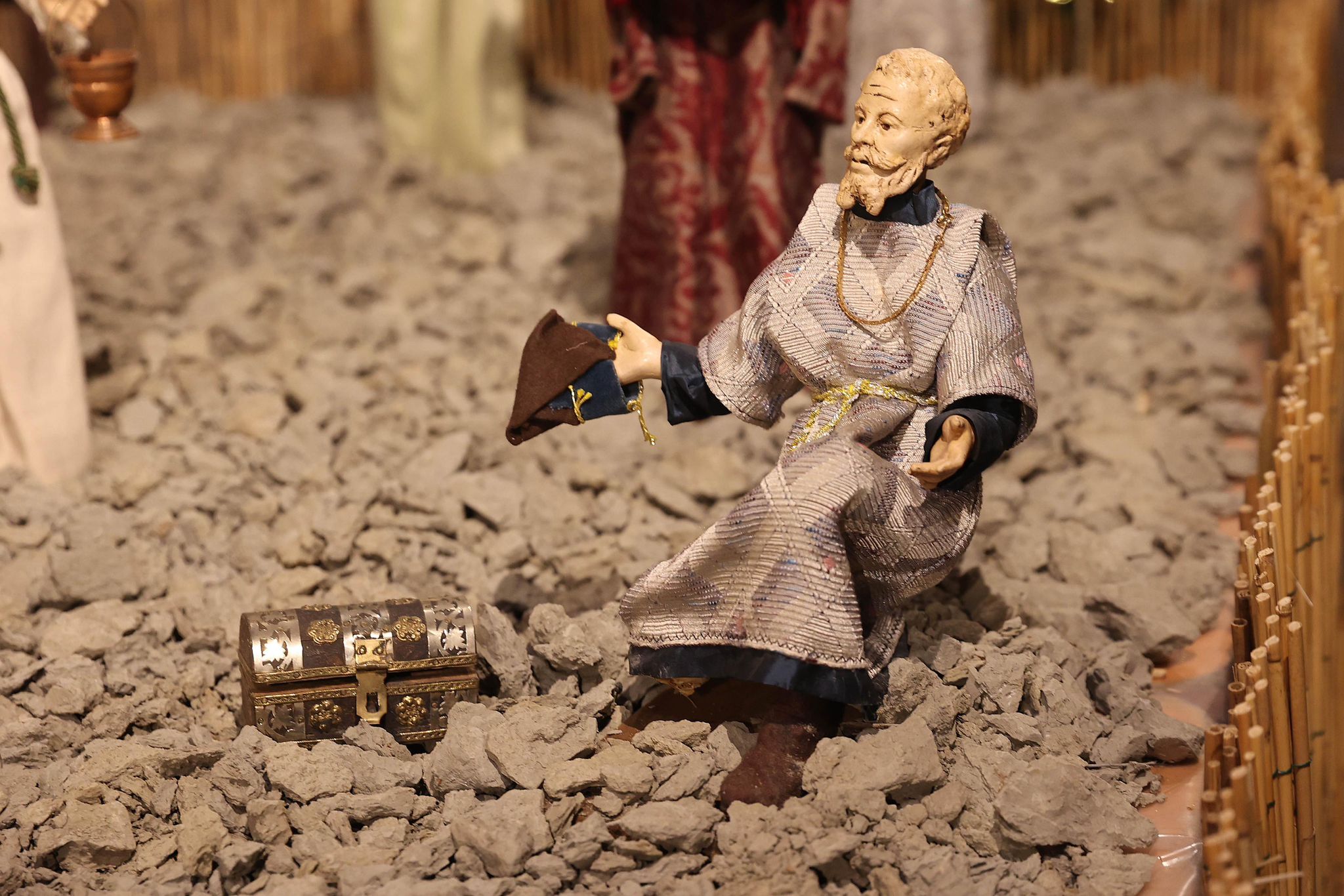 “Mi sono ispirato agli antichi profeti – spiega Padre Alfredo – come Mosè, Isaia, i patriarchi come Abramo, che dovevano salire sempre in alto, sul monte, per incontrare Dio. Con la nascita di Gesù invece non c’è più bisogno di scalare le montagne, perchè è lui che scende dal cielo tra di noi. Pertanto la scelta della terra per rappresentare quello che avevo in mente di fare è caduta su delle zolle di crete senesi, perchè ho pensato che con il loro colore ‘azzurrino’ potessero evidenziare meglio il significato profondo del presepe che alla fine è il cielo che scende sulla terra. Questo è il messaggio che manda quest’anno il presepe di San Domenico. C’è da evidenziare poi la bellezza delle statuine, i cui vestiti sono stati tutti cuciti a mano dalle donne della parrocchia, che hanno fatto un lavoro certosino di ricerca sui costumi e la scelta delle stoffe.