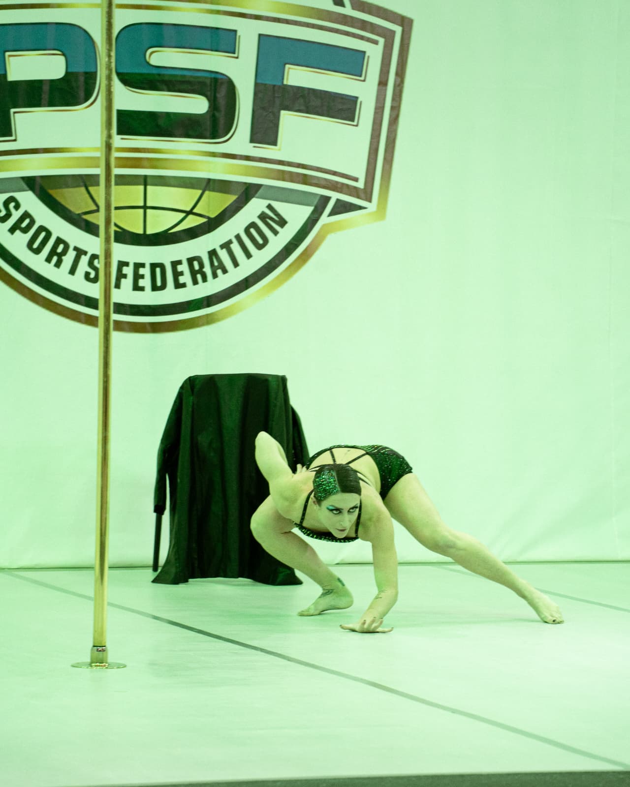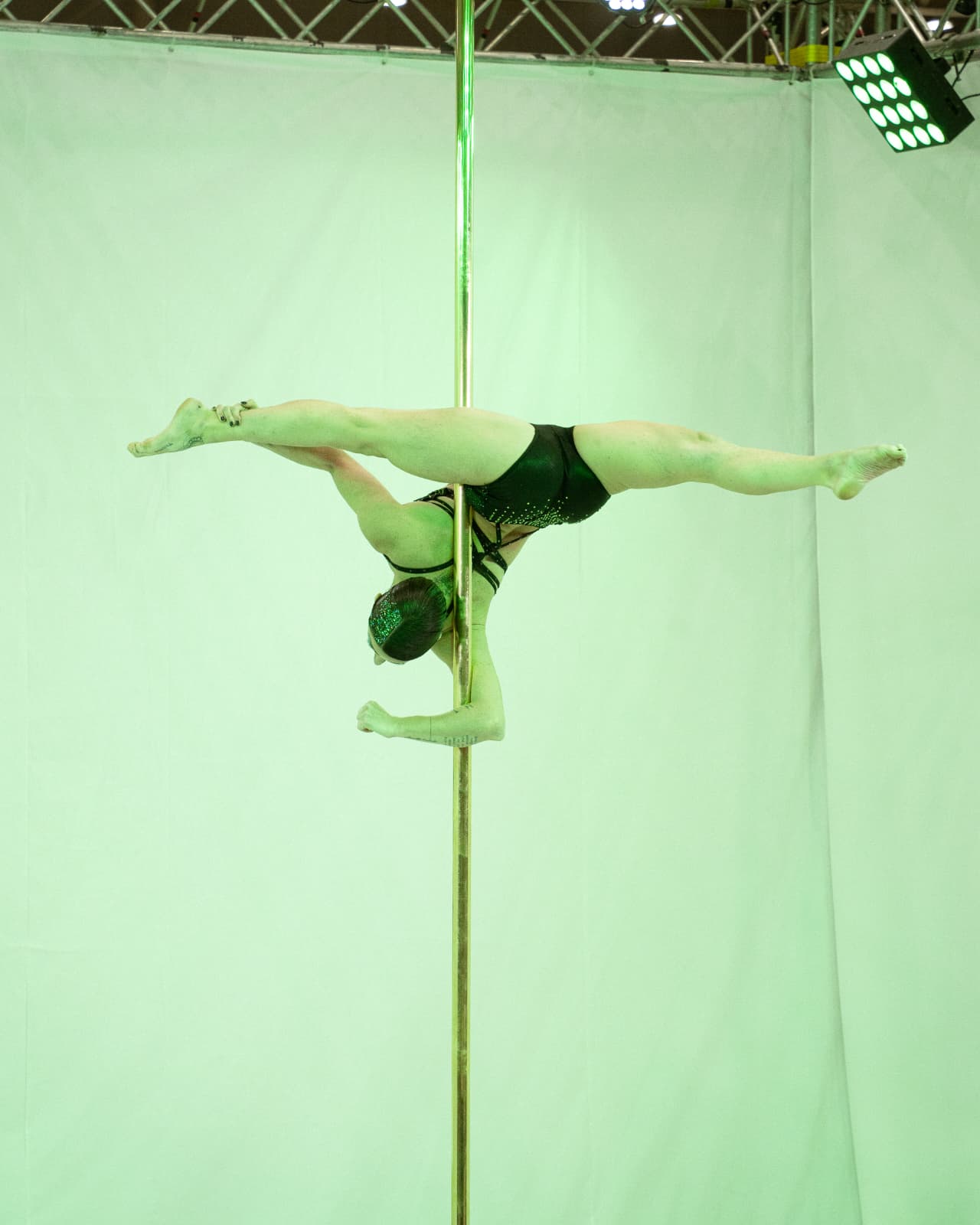 “La competizione si basa su una routine artistica di massimo 4 minuti, in cui l’atleta deve portare un esercizio che rispecchi il tema che rappresenta. Deve riempire lo spazio in altezza e a terra in modo equilibrato, dimostrando maestria e fluidità. È tutto studiato nel minimo dettaglio, musica, costume, movimenti. Io ho portato una routine a tema Matrix. Movimenti a terra e sul palo studiati per ricordare e citare il film.