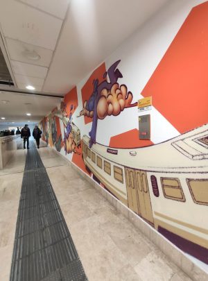 Invece di sporcare gli spazi comuni, adesso i giovani hanno la possibilità di farseli propri e mostrare e migliaia di occhi la loro arte. Un’idea quella della street art per i giovani di Siena, che permette loro di appropriarsi degli spazi della città tutelandoli invece di distruggerli e imbrattarli come spesso succede ad esempio nel sottopasso della Lizza. “Si, il sottopasso della Lizza è in programma – ha detto l’assessore alle politiche giovanili Clio Biondi Santi – stiamo già pensando a come lavorarci”. Intanto stamani è stato inaugurato un nuovo murales lungo molti metri. Si tratta di un’opera che racconta il viaggio o meglio la voglia di viaggiare. Realizzato nel corridoio che collega la stazione ferroviaria al centro commerciale Porta Siena, è stato realizzato dagli studenti del liceo artistico di Siena nell’ambito del progetto di street art dell’assessorato alle politiche giovanili. Gli studenti sono stati supportati dal collettivo artistico 400 Drops Crew.
