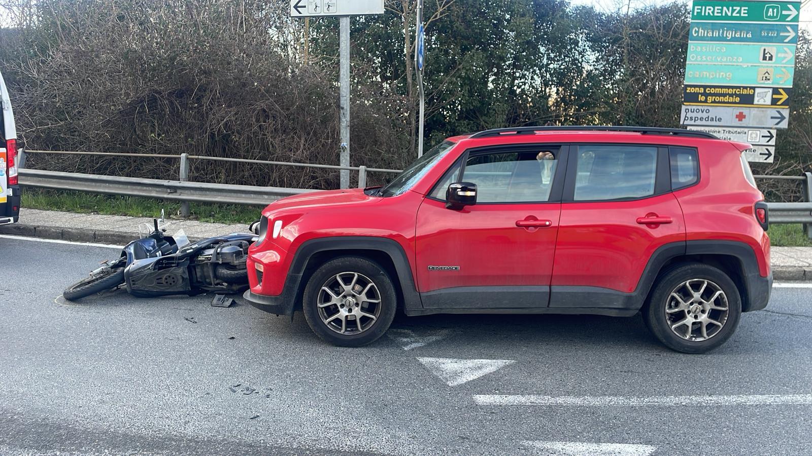 Incidente anche a Ravacciano, in via del Vecchietta, coinvolti un’auto e un ciclomotore, nessun ferito.