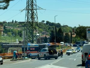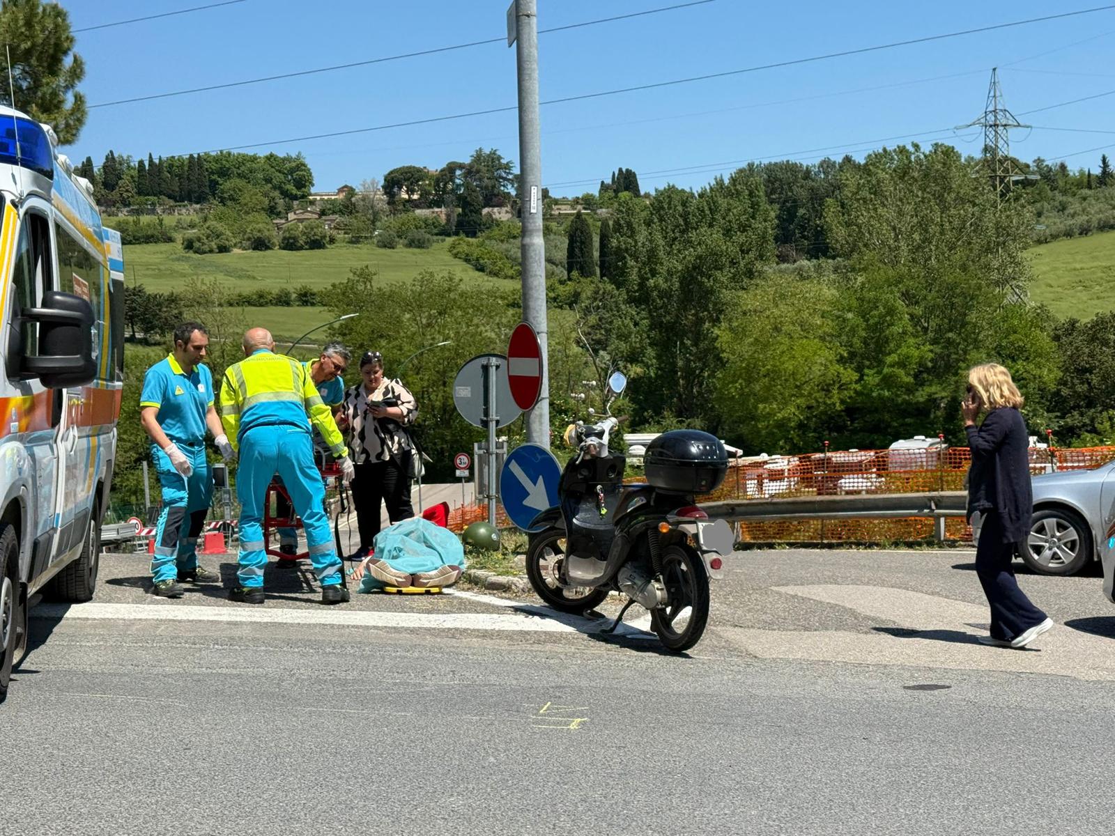 Sul posto l’ambulanza della Misericordia di Siena e la polizia municipale. Rallentamenti per il traffico.
