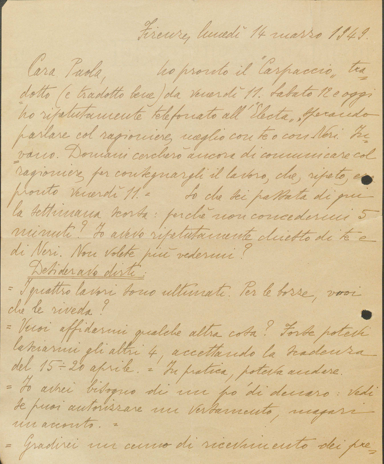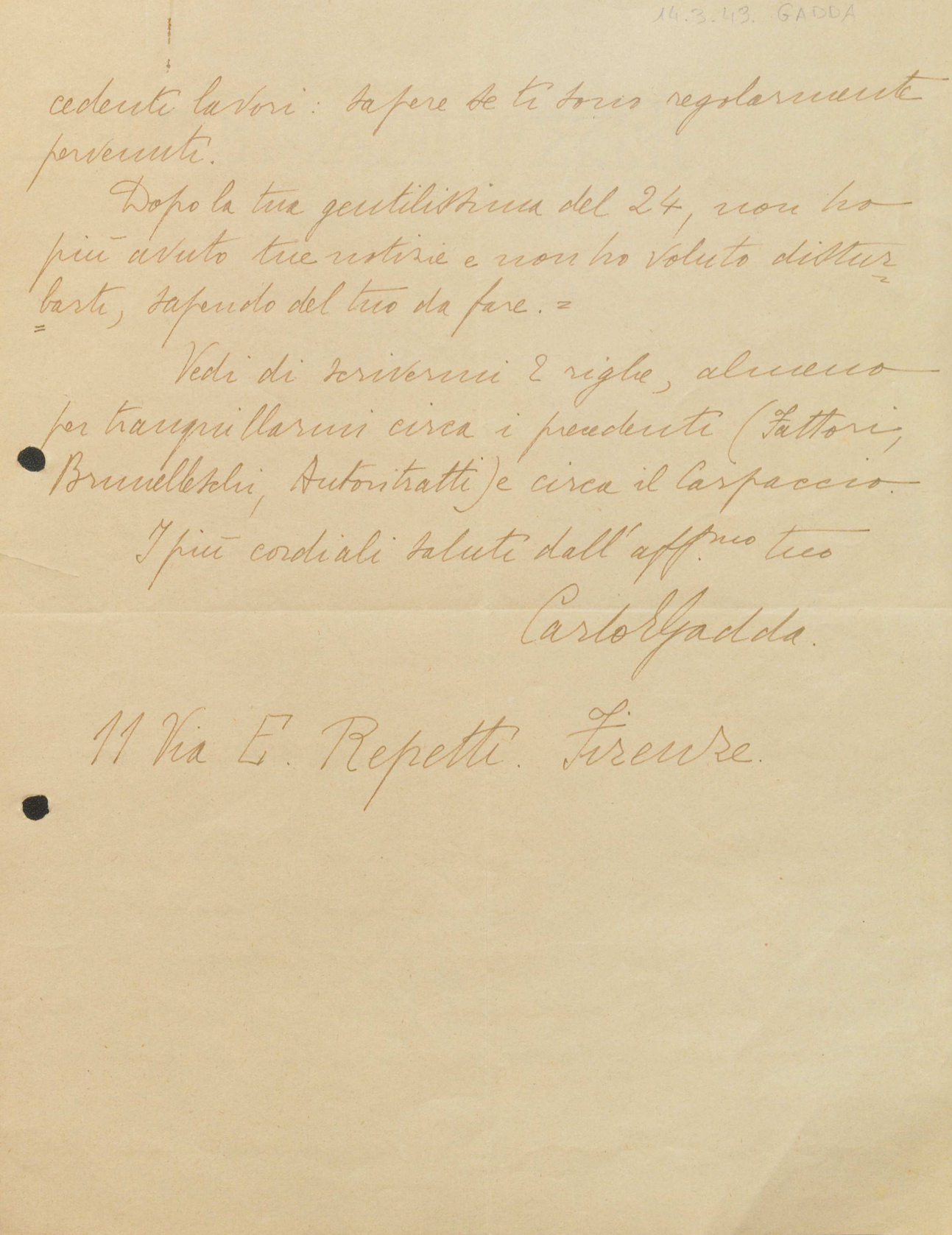In foto alcune immagini del materiale archivistico acquisito: si tratta di una lettera autografa di Carlo Emilio Gadda del 1949.