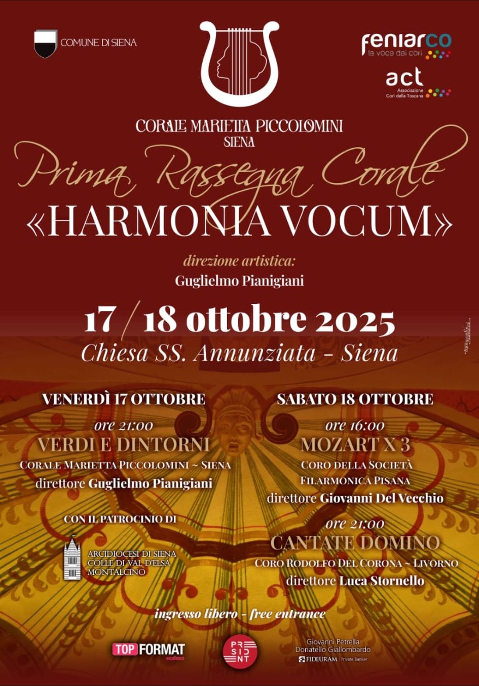 “È con particolare orgoglio che presentiamo questi tre concerti alla cittadinanza nei giorni di Venerdi 17 ottobre ore 21, Sabato 18 ottobre alle ore 16 e alle ore 21 presso la chiesa della SS.Annunziata. Ringraziamo il Comune di Siena per il sostegno dato alla nostra iniziativa, sperando di poter proseguire negli anni a venire”.