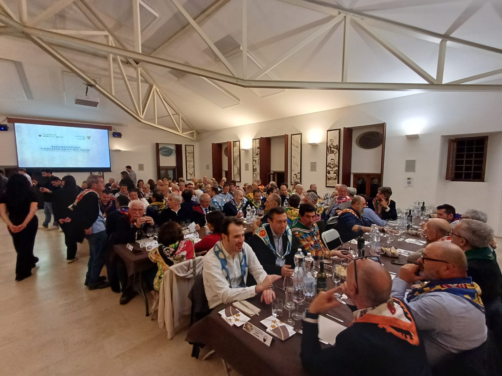 Tanti i presenti al banchetto, tra collaboratori, componenti, ex e contradaioli, tutti uniti dalla passione per la Festa e la vita contradaiola: grande attenzione da parte del Comitato è rivolta ai bambini, visto che nelle scuole vengono continuamente proposte e realizzati progetti con mostre e pubblicazioni, mirati a creare interesse e sviluppare una sensibilità civica nei confronti delle Contrade, della Città e della sua Festa, anche favorendo l’integrazione tra gli alunni che non sono legati a Siena, e di sensibilizzare i giovani alla tutela ed alla salvaguardia delle tradizioni cittadine. Ogni anno il progetto si conclude con la mostra “Sòna sòna campanella” nel Cortile del Podestà dove vengono esposti gli elaborati degli alunni.