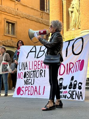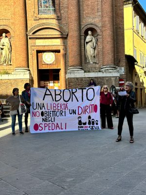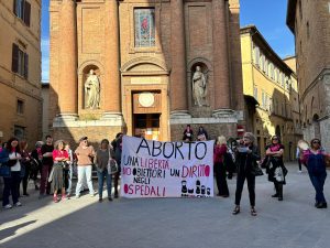 “Il nostro corpo non si tocca, lo difendiamo con la lotta” . Con questo grido le attiviste di Non Una Di Meno Siena e di altri collettivi senesi (come Collettiva Frog e Link Siena) sono scese in piazza per rispondere all’attacco portato avanti dal governo ai consultori e al diritto all’aborto. “Il governo attacca i nostri corpi e il nostro diritto di autodeterminazione con il voto, favorevole alla camera, all’emendamento del PNRR che consentirebbe l’ingresso, all’interno dei consultori pubblici, di associazioni antiabortiste – dicono le attiviste – . Vogliamo impedire l’ingresso di antiabortisti misogini nei nostri consultori. Scendiamo in piazza per difendere diritti acquisiti che vengono messi in discussione e per pretenderne di nuovi”.