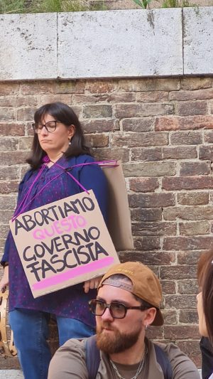 Continueremo ad abortire insieme, anche illegalmente, se e quando lo renderete necessario. Continueremo a scambiarci pratiche, consigli, suggerimenti, aiuti, in una condivisione di sorellanza e saperi che per troppo tempo si è ritenuta superflua a causa di un diritto che ci avete raccontato come incrollabile. Continueremo a creare reti di mutualismo dal basso che abbattano ogni ostacolo che ci mettete sulla strada e lo faremo senza lasciare sola alcuna soggettività. Continueremo a raccontare i nostri aborti, riappropriandoci di una narrazione che cercate da sempre di toglierci, imponendoci così un inderogabile senso di colpa e vergogna che noi smantelliamo con la potenza dei nostri corpi che si autodeterminano e lo urlano in piazza, ne parlano in coda al supermercato, ne ridono davanti alle chiese. Perché potete fare e cambiare le leggi, ma dettiamo noi le regole sui nostri corpi”.
