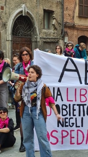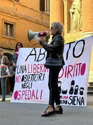 “Il nostro corpo non si tocca, lo difendiamo con la lotta” . Con questo grido le attiviste di Non Una Di Meno Siena e di altri collettivi senesi (come Collettiva Frog e Link Siena) sono scese in piazza per rispondere all’attacco portato avanti dal governo ai consultori e al diritto all’aborto. “Il governo attacca i nostri corpi e il nostro diritto di autodeterminazione con il voto, favorevole alla camera, all’emendamento del PNRR che consentirebbe l’ingresso, all’interno dei consultori pubblici, di associazioni antiabortiste – dicono le attiviste – . Vogliamo impedire l’ingresso di antiabortisti misogini nei nostri consultori. Scendiamo in piazza per difendere diritti acquisiti che vengono messi in discussione e per pretenderne di nuovi”.