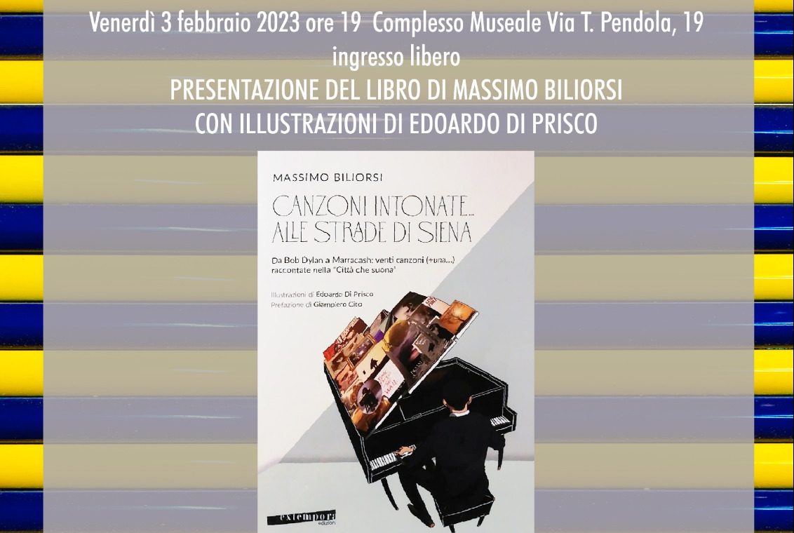 Protagonista Massimo Biliorsi con la sua opera Canzoni intonate alle strade di Siena. Da Bob Dylan a Marracash venti canzoni (+…una) raccontate nella “Città che suona” (Extempora Edizioni).
