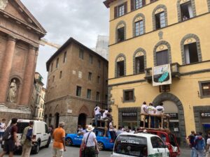 Un parcheggio selvaggio di furgoni e mezzi pesanti. E’ lo scenario trovato stamani in Piazza Tolomei dai goliardi dell’Università di Siena, impegnati nel tradizionale appuntamento della “carciofata” che apre le Feriae Matricularum, quest’anno programmate nel periodo inedito di settembre dopo uno stop causa Covid di quasi 2 anni (solitamente i giorni sono a maggio).