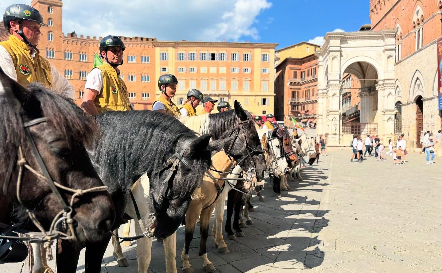 In Piazza del Campo a Siena sono arrivati cavalli e cavalieri dell’Equiraduno del Giubileo 2025, una delle tappe di un lungo viaggio a cavallo che in diciotto giorni, lungo la Via Francigena, porterà cavalieri e amazzoni fino a Roma. Siena fa parte di questo cammino e lo fa con ciò che più la rappresenta: la storia, il legame profondo con il cavallo, la capacità di accogliere e raccontare spiritualità e paesaggio in un’unica immagine.