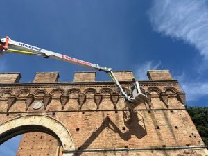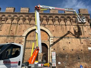La chiusura dell’accesso alla porta era avvenuta dieci giorni fa dopo che erano caduti alcuni frammenti di un mattone dall’arco di ingresso. Da quel momento era stata disposta la chiusura e così accesso ed uscita dei mezzi erano stati spostati verso Porta Romana. Un danno sia per i residenti che per i commercianti della zona, come dichiarato al nostri microfoni. Questa mattina però i tecnici della soprintendenza (le mura della città sono di sua competenza), sono arrivati sul luogo e stanno predisponendo la messa in sicurezza dei due archi di accesso alla porta. Molto probabilmente saranno predisposte delle reti per evitare ogni pericolo. Almeno che non vengano individuate altre problematicità la porta dovrebbe venir riaperta entro la fine della giornata. Successivamente verranno predisposti nuovi interventi di manutenzione anche in altri punti. Stessa cosa verrà fatta per le altre mura della città.