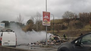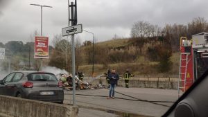 Siena, incendio in via Massetana Romana, dove un mezzo di SeiToscana con del materiale a bordo ha preso fuoco.