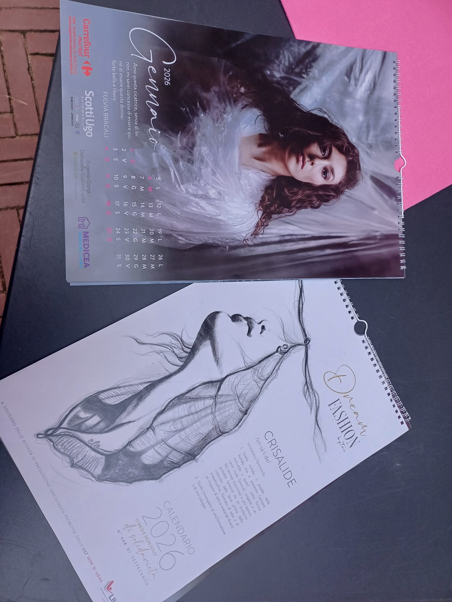 La copertina del calendario è un disegno firmato da una nota artista senese, Claudia Nerozzi, autrice tra l’altro del drappellone in occasione del palio del 2 luglio del 2013. A fare da colonna portante all’iniziativa la Dream Fashion: Teo De Bonis e Manuela Vigni: “I nostri prossimi appuntamenti per sensibilizzare tutti sulla prevenzione al seno, saranno il 4 ottobre a Sovicille Talent Show Rosa e il 12 ottobre la sfilata di moda Fashion Rosa al Santa Maria della Scala”.