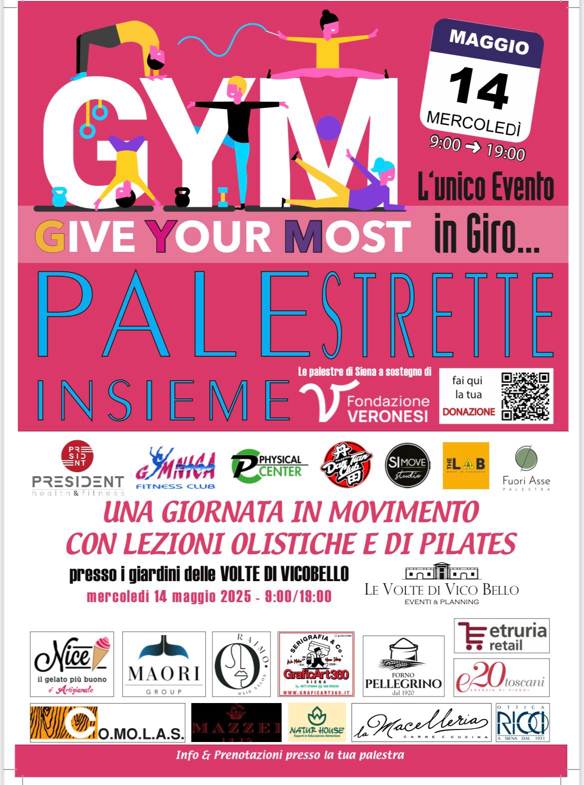 L’appuntamento è per mercoledì 14 maggio dalle 9 alle 18 alle Volte di Vicobello. Per le prenotazioni è possibile iscriversi tramite le palestre oppure è possibile anche presentarsi direttamente presso la location.