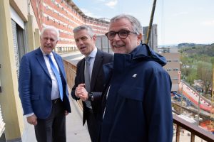 Il presidente Eugenio Giani questa mattina ha svolto un sopralluogo a Le Scotte di Siena sul cantiere del Lotto Volano, il nuovo edificio di supporto all’ospedale che consentirà in futuro la ristrutturazione dei diversi lotti del presidio ospedaliero-universitario. Accompagnato dall’assessore alla salute Simone Bezzini e dal dg dell’Aou Senese Antonio Davide Barretta nonché dai tecnici che stanno eseguendo i lavori, Giani ha espresso la sua soddisfazione e ricordato come si tratti di “una ristrutturazione da più di 50 milioni che vediamo emergere giorno dopo giorno”.