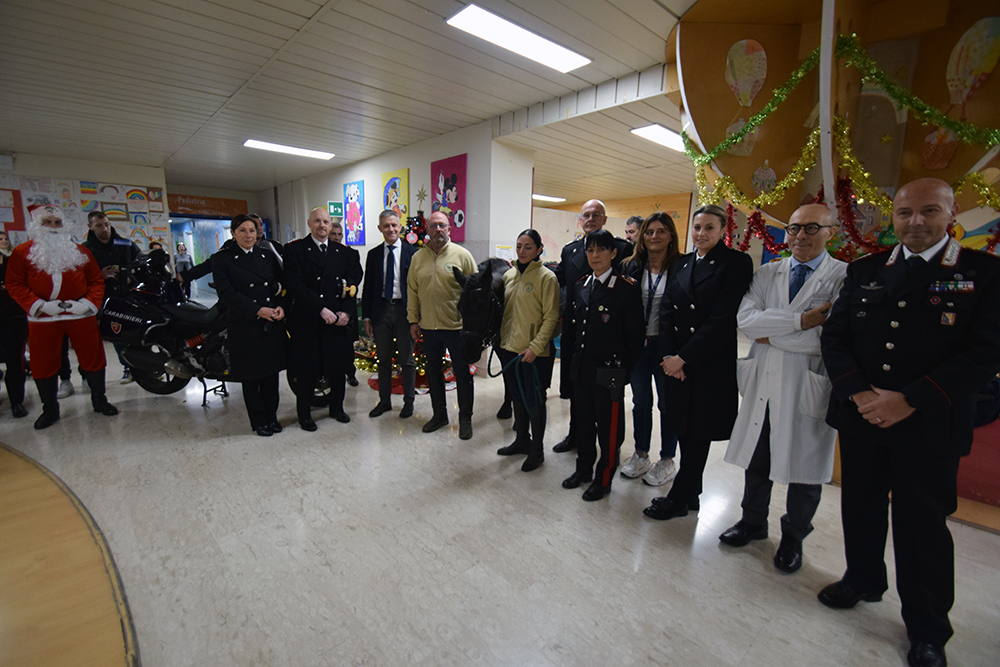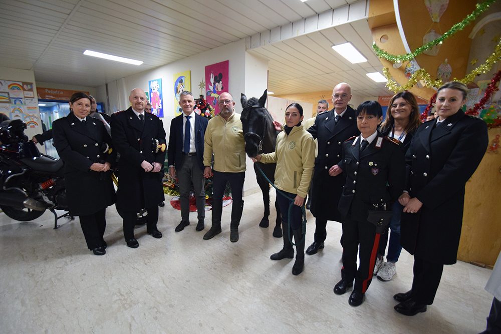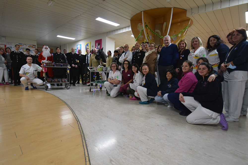 È stata Magnolia, splendido esemplare di Cavallino di Monterufoli, ad accompagnare il Babbo Natale dell’Arma dei Carabinieri, che come ogni anno si è recato all’Azienda ospedaliero-universitaria Senese per portare regali e sorrisi ai piccoli pazienti del Dipartimento della Donna e dei bambini e della Neuropsichiatria infantile.