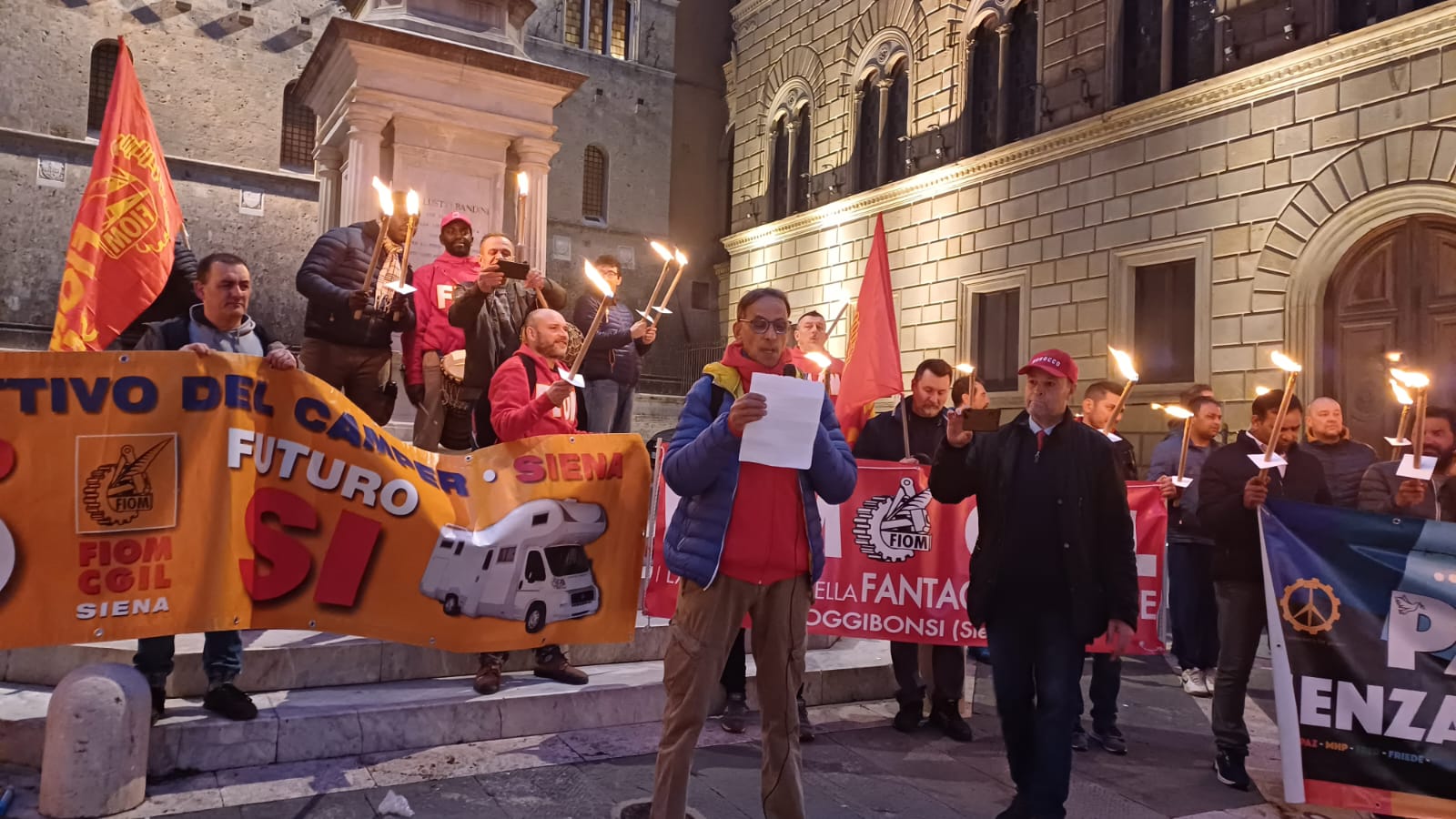 La Fiom Cgil ha fatto sentire la propria voce, gridando il proprio messaggio di pace, per ribadire un cessate il fuoco e che si riaprano i negoziati per l’Ucraina e la Palestina subito. “Per la pericolosa deriva verso la quale il mondo sta andando attraverso i numerosi conflitti internazionali, ultimo quello palestinese israeliano, – spiega Daniela Miniero, Fiom Cgil di Siena – condanniamo la guerra come strumento di risoluzione di qualsiasi controversia, come recita la nostra Carta costituzionale, dissentiamo da qualsiasi metodo repressivo di ogni pensiero liberamente e democraticamente espresso ed esprimiamo la piena e totale solidarietà ai popoli oppressi e a tutta la comunità civile di donne, uomini, giovani e bambini, vittime non solo di bombe ma anche di logiche prettamente economiche e politiche”.