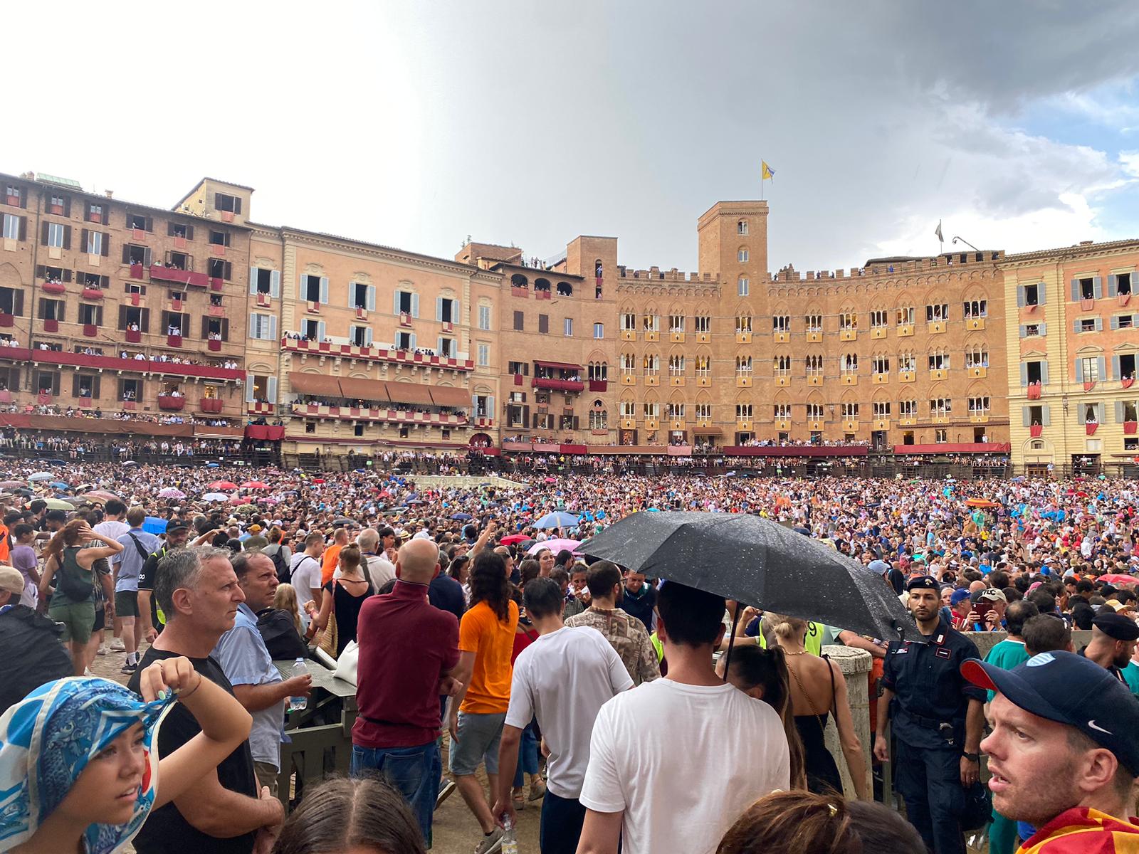 “Un palio senza corteo, un’ambulanza che entra in piazza del Campo e ne esce a marcia indietro, il campanone che suona o non suona, l’apertura e chiusura disordinata dei cancelli… I due palii 2024, funestati dalla pioggia e per questo rinviati, hanno messo sotto gli occhi dei senesi e dei visitatori una serie di inceppi della macchina organizzativa.