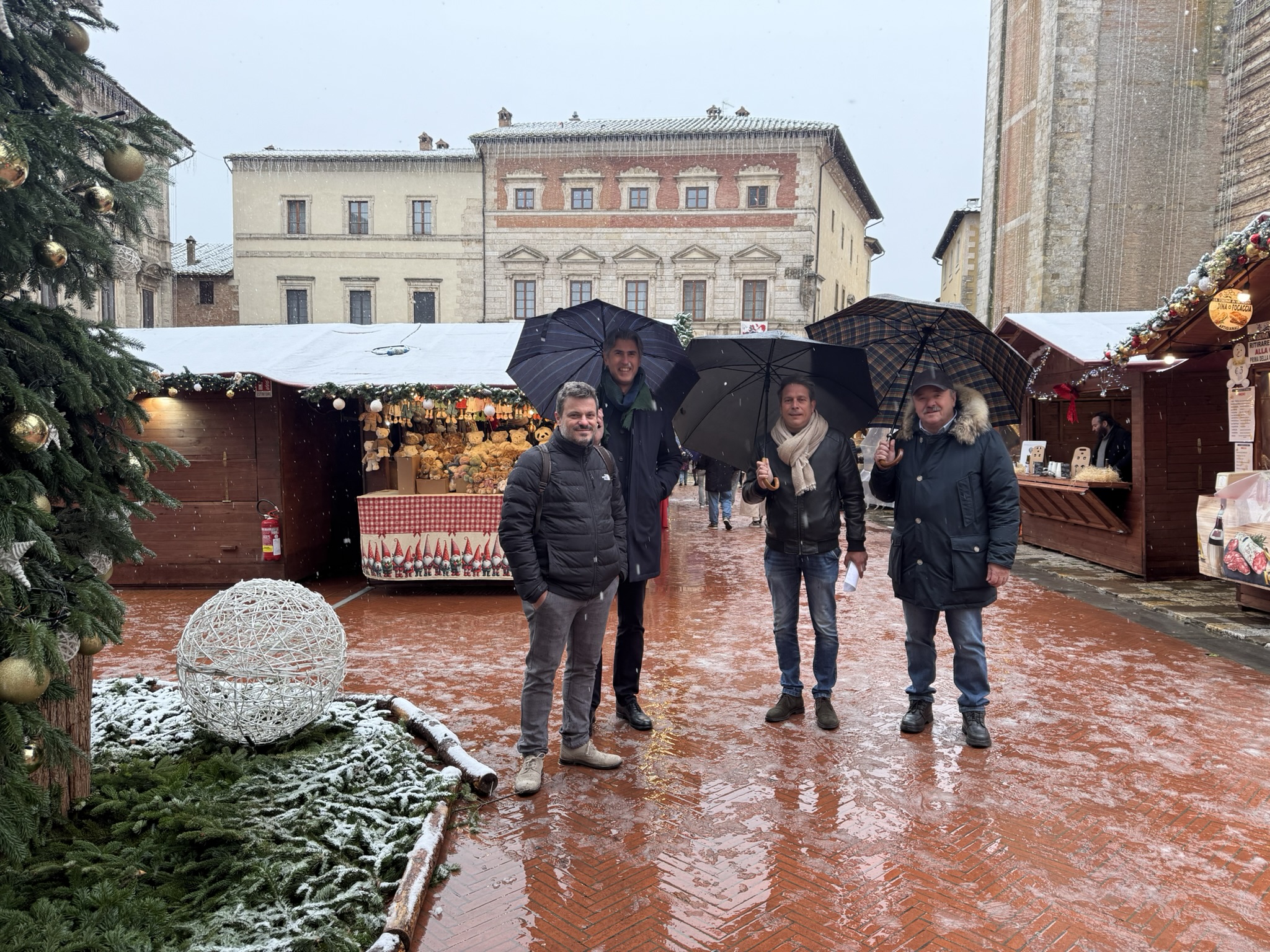 La prima nevicata dell’anno ha accolto questa mattina l’apertura di Natale a Montepulciano, regalando al centro storico un’atmosfera particolarmente suggestiva. In Piazza Grande e lungo Via San Donato hanno preso vita le oltre settanta casine del Mercatino di Natale, mentre il Castello di Babbo Natale ha aperto ufficialmente le porte ai visitatori nella Fortezza.