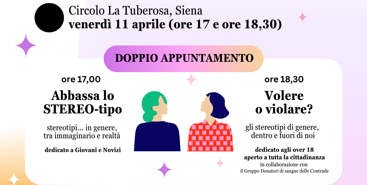 Due momenti dal carattere laboratoriale, dedicati ai giovani – ragazze e ragazzi – e alle persone adulte; due occasioni di confronto per affrontare, anche in Contrada, il tema assai attuale degli stereotipi di genere, della prevenzione e del contrasto a ogni forma di violenza, soprattutto quella contro le donne. Sono quelli organizzati per il prossimo venerdì 11 aprile dai Gruppi Giovani-Novizi delle Contrade e dalle Commissioni Solidarietà e Mutuo Soccorso: due momenti in cui riflettere, partecipare, interrogarsi su quanto gli stereotipi di genere siano diffusi e radicati e su come si possa agire per prevenirli e contrastarli, a partire proprio dalle Contrade, impegnandosi per costruire comunità più consapevoli e inclusive.
