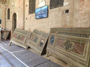 Oggi gli studenti francesi sono a lavoro sotto il maestro decoratore e restauratore della Scuola Edile , Maurizio Sampieri che da anni si occupa del recupero degli steccati dei palchi del comune. Ma non è tutto.